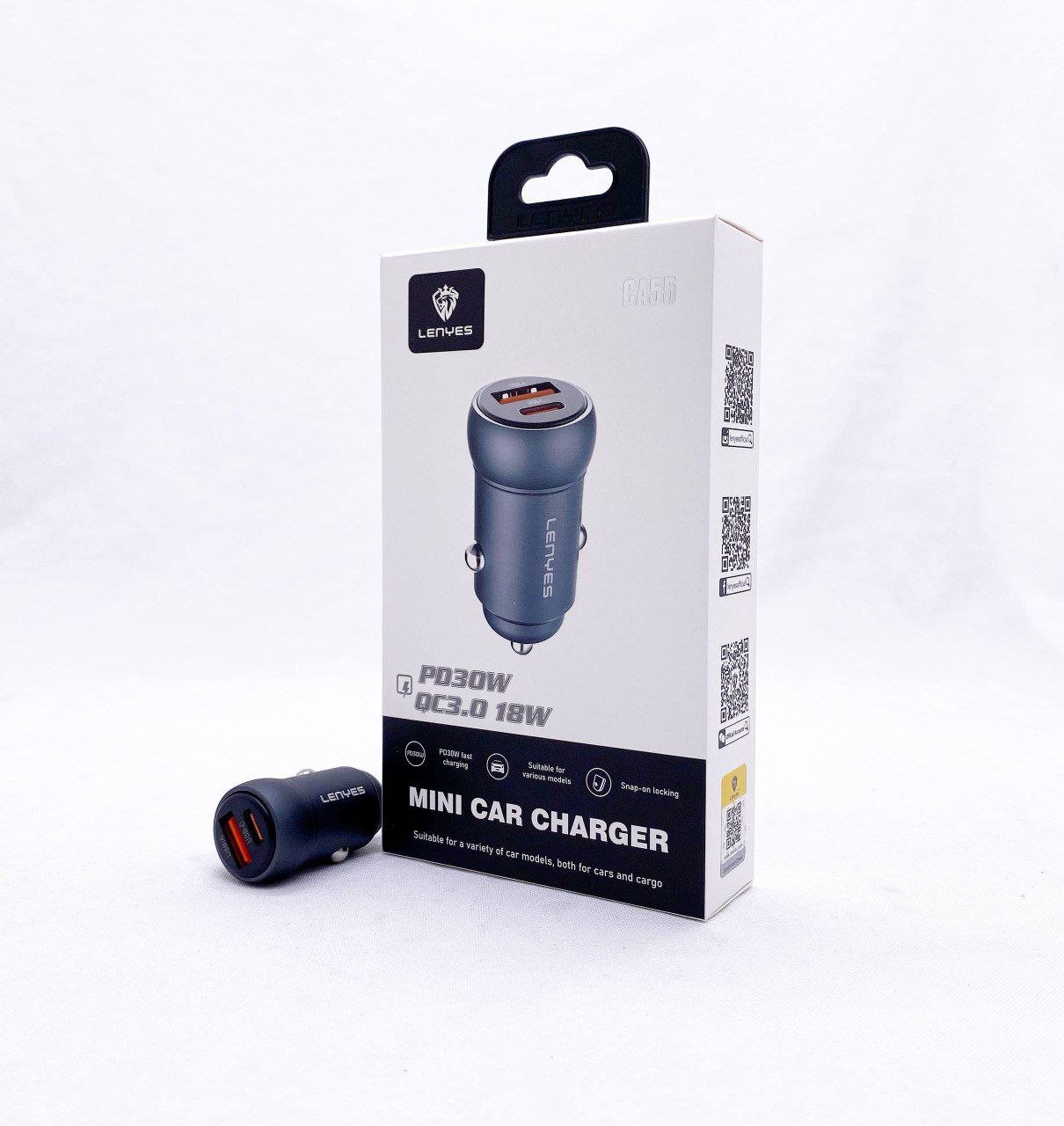 LENYES USB/PD CA55 – bu ixcham avtomobil zaryadlovchi bo‘lib, Power Delivery 18W va USB-C porti orqali smartfon va planshetlarni tez va xavfsiz zaryadlash imkonini beradi.