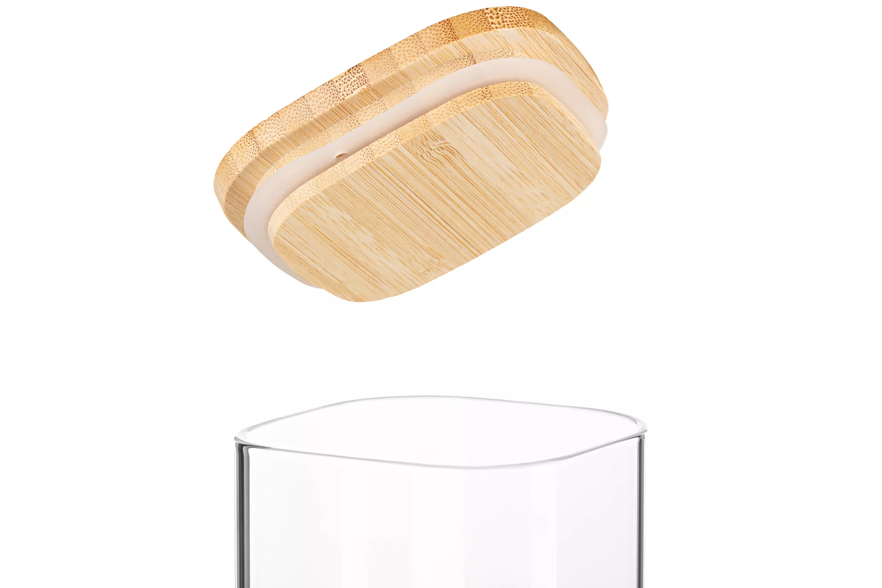 Tabiiy bambuk qopqog‘i zich yopiladi va mahsulotni namlikdan, begona hidlardan hamda hasharotlardan himoya qiladi. Borosilikat shisha yuqori harorat farqlariga chidamli, hidlarni singdirmaydi va ekologik jihatdan xavfsiz.