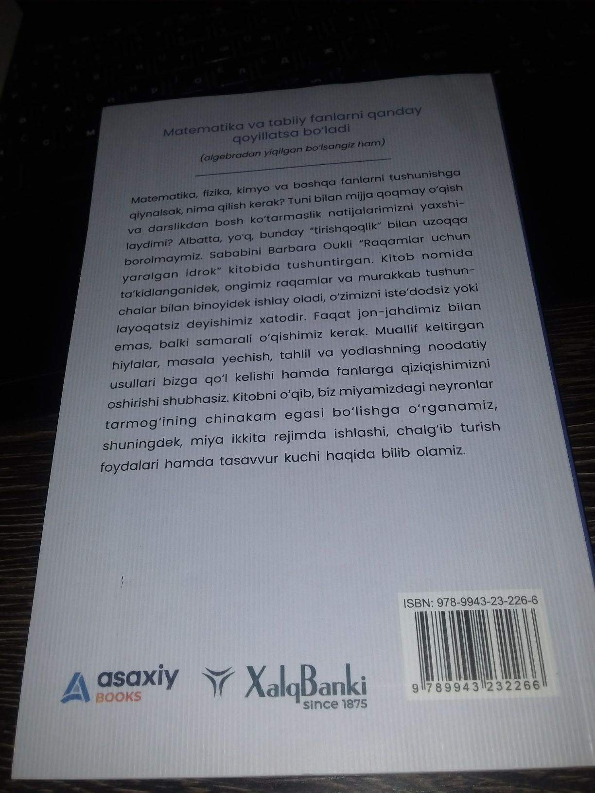 “Asaxiy Books” loyihasidan yangi qadam, Barbara Ouklining “Raqamlar uchun yaralgan idrok” kitobi oʻzbek tilida!