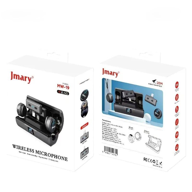 Jmary MW19 video yozish, strim, intervyu va ma’ruzalar uchun mos. Mobil qurilmalar bilan tez sinxronlanadi, yengil vazni va portativ g‘ilofi uni uyda, studiyada yoki ko‘chada ishlatish uchun qulay qiladi. 2.4G texnologiyasi ovozni barqaror va sifatli uzatadi, past kechikish esa audio va videoni mukammal uyg‘unlashtiradi.