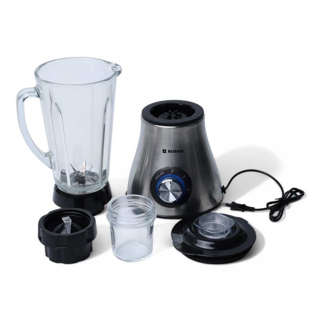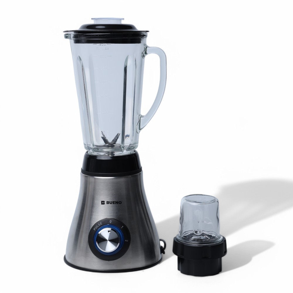 Statsionar blender Bueno BBL-630 2in1: 1,5 litrli blender va 0,5 litrli kofe maydalagich, qattiqlashtirilgan zarbaga chidamli shishadan.