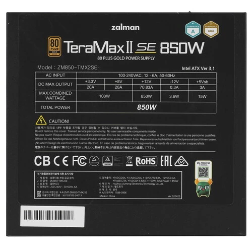 ZALMAN TeraMax II SE 850W — bu nafaqat yukni bardosh beradigan, balki chiroyli, ishonchli va jim ishlaydigan quvvat manbaidir. Kuchni kompromissiz tanlang!