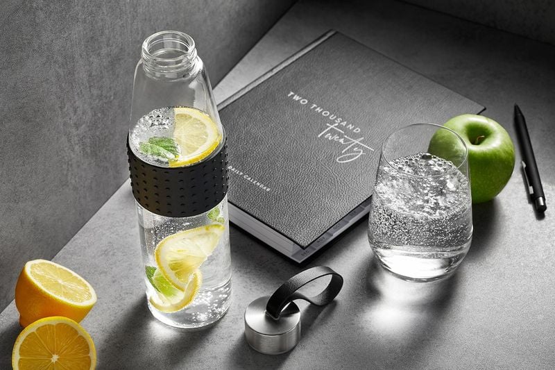 GEFU OLIMPIO suv idishi — plastik idishlarga ekologik va nafis alternativa, issiq va sovuq ichimliklar uchun mukammal.