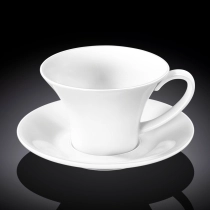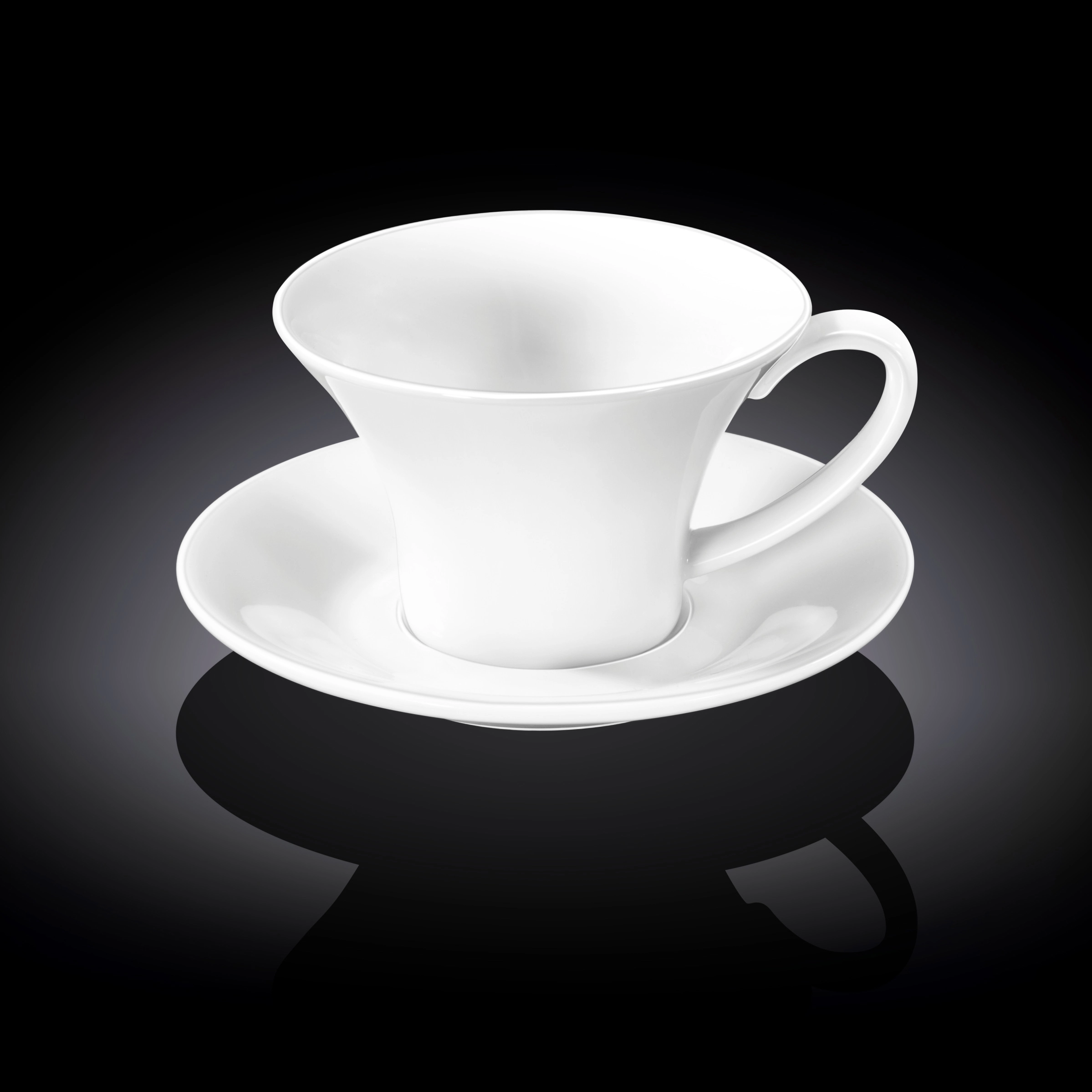 Чашка чайная с блюдцем Wilmax WL-993171 / AB отличаются высокой прочностью и устойчивостью к ударам и сколам, выдерживают значительные перепады температур, что позволяет использовать их в микроволновой печи и посудомоечной машине. Изделия выполнены из высококачественного фарфора с глазурованным покрытием.