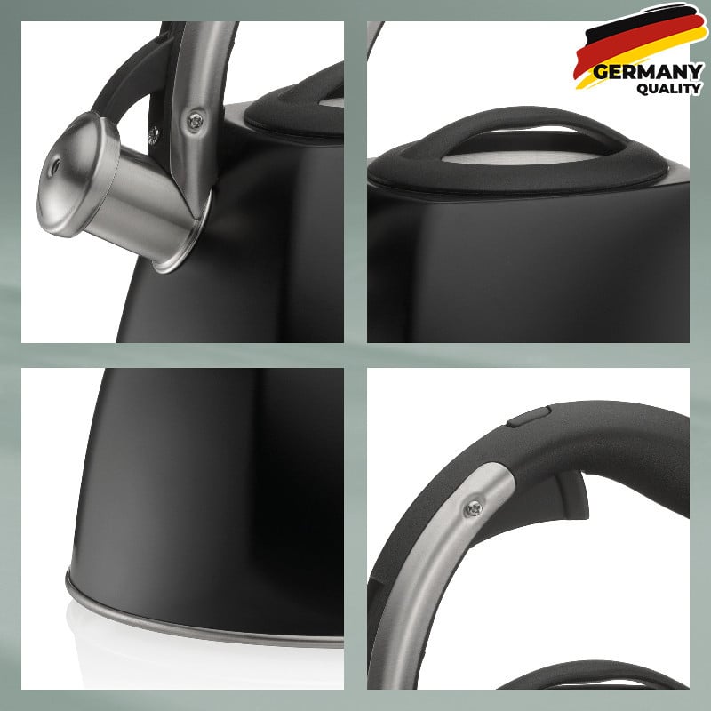 Suvni tezroq qaynatib, vaqt va energiyani tejaydi. Svistok sizni jarayondan chalg‘itmaydi — hammasi o‘z vaqtida tayyor bo‘ladi. Tutqichdagi xavfsiz mexanizm esa quyishni qulay va ishonchli qiladi.