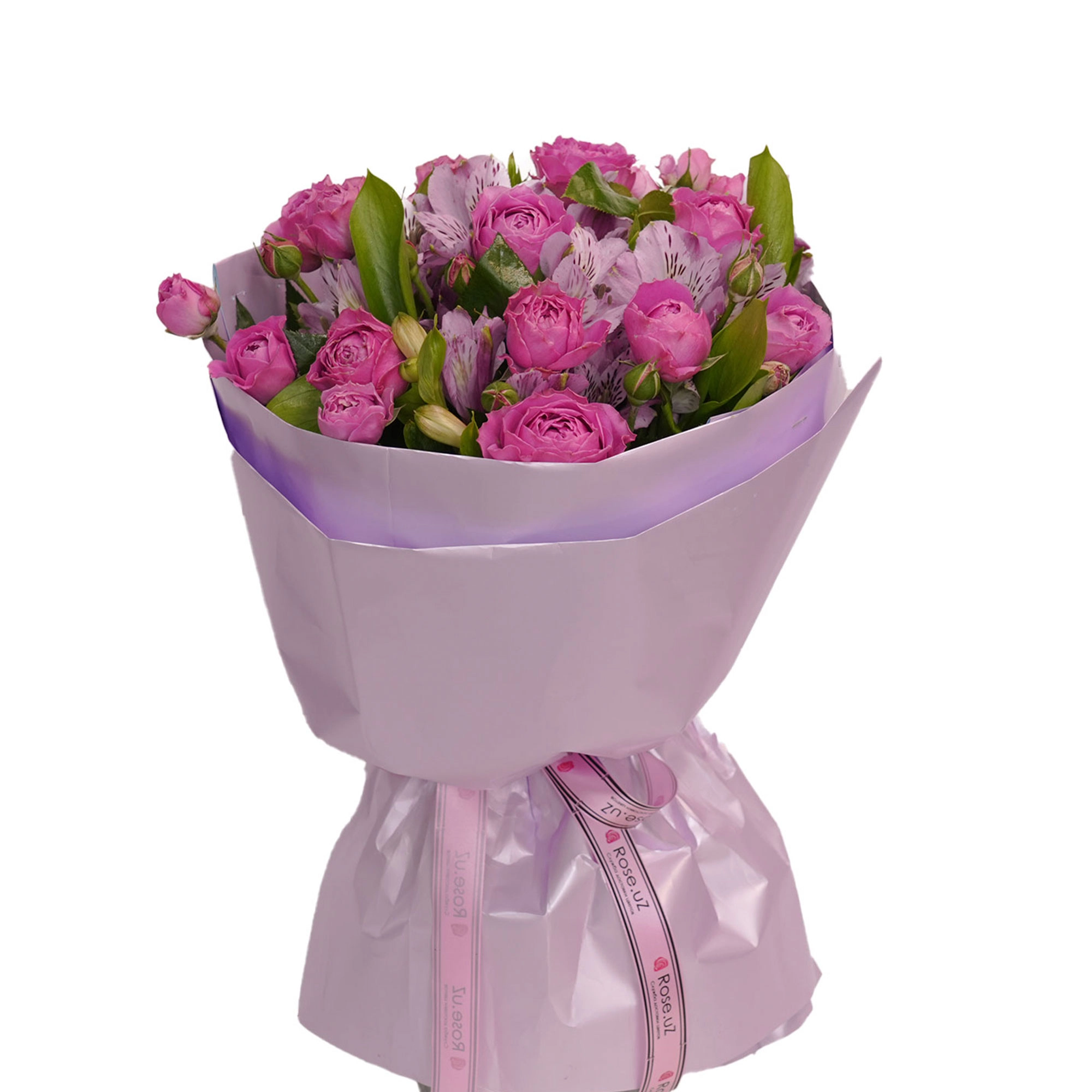 Babls atirgullari guldastasi noziklik, romantika va nafosatning haqiqiy timsolidir. Bu g'ayrioddiy gullar, o'zlarining yam-yashil, qatlamli barglari bilan ajoyib pionlarga o'xshab, shakl va rangning ajoyib kombinatsiyasini yaratadi. Bubbles atirgullarining nozik pushti soyalari yorug'likdan to'yingangacha o'tib, guldastaga o'ziga xos joziba va joziba bag'ishlaydi.