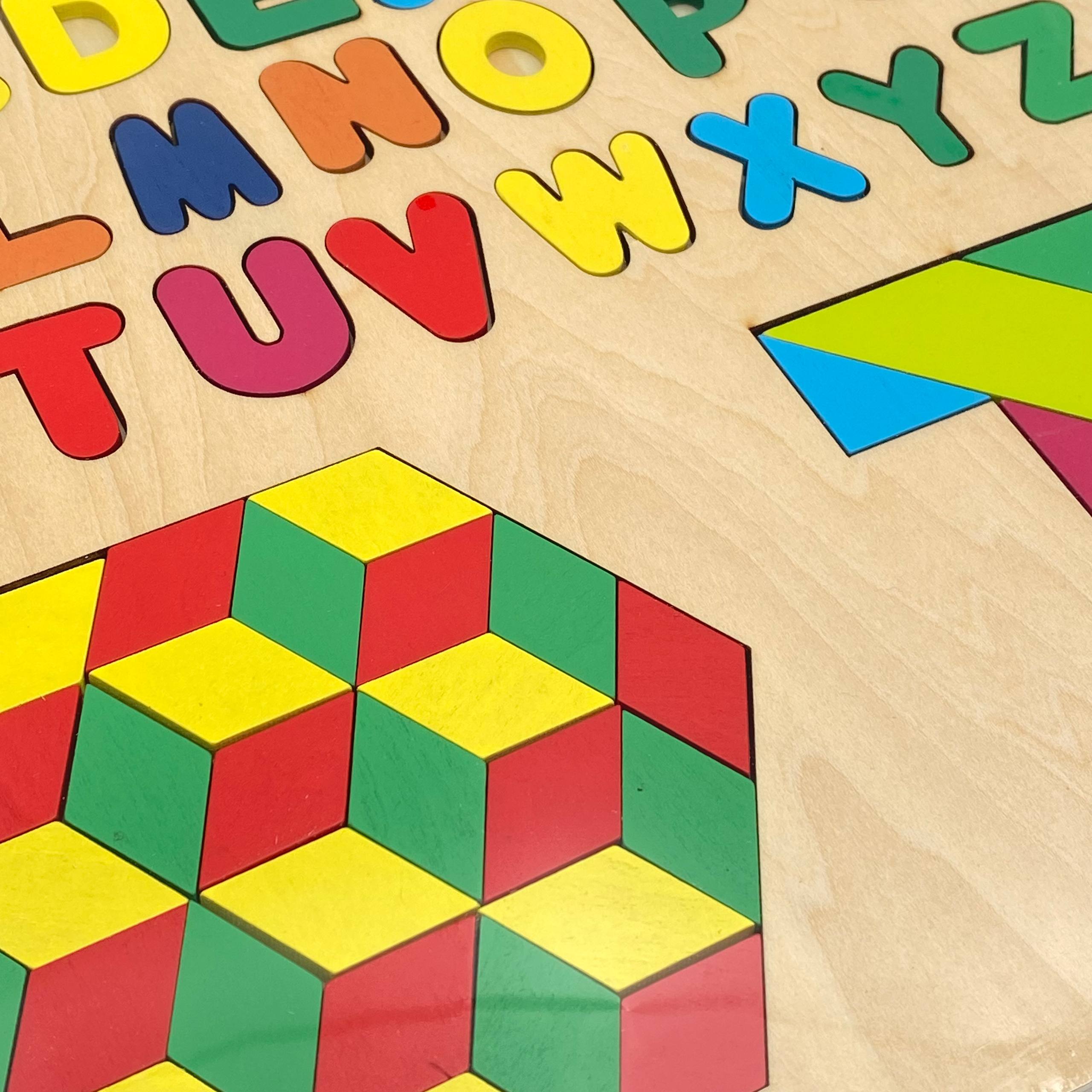 Yog‘ochli “Harf va shakllar” pazli — o‘yin orqali o‘rganish zavqi!