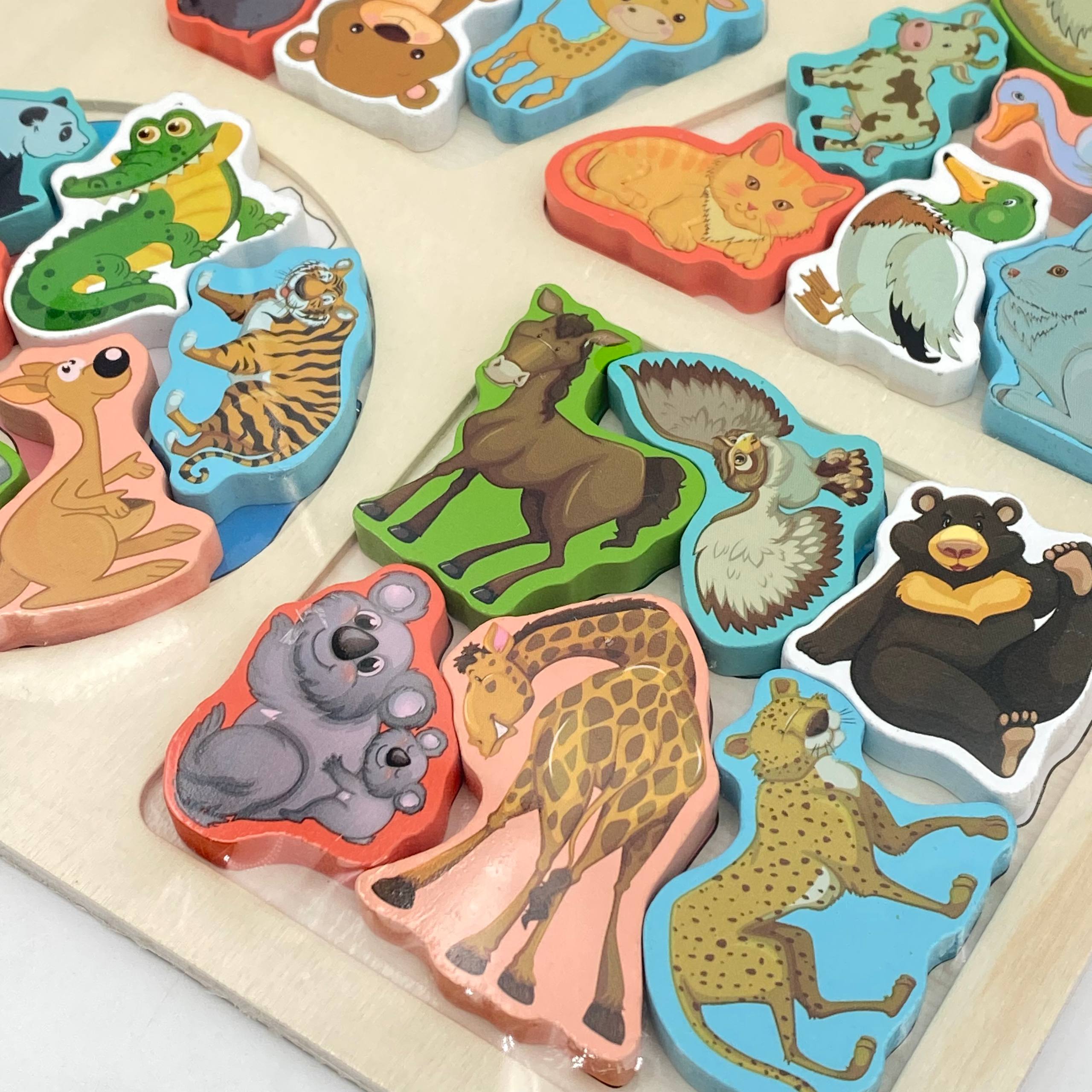 “Hayvonlar” yog‘ochli pazli — bu faqat o‘yinchoq emas, balki o‘rganish vositasi hamdir. Farzandingiz o‘ynab o‘rganadi, bu esa uning tafakkurini va ijodkorligini mustahkamlaydi.