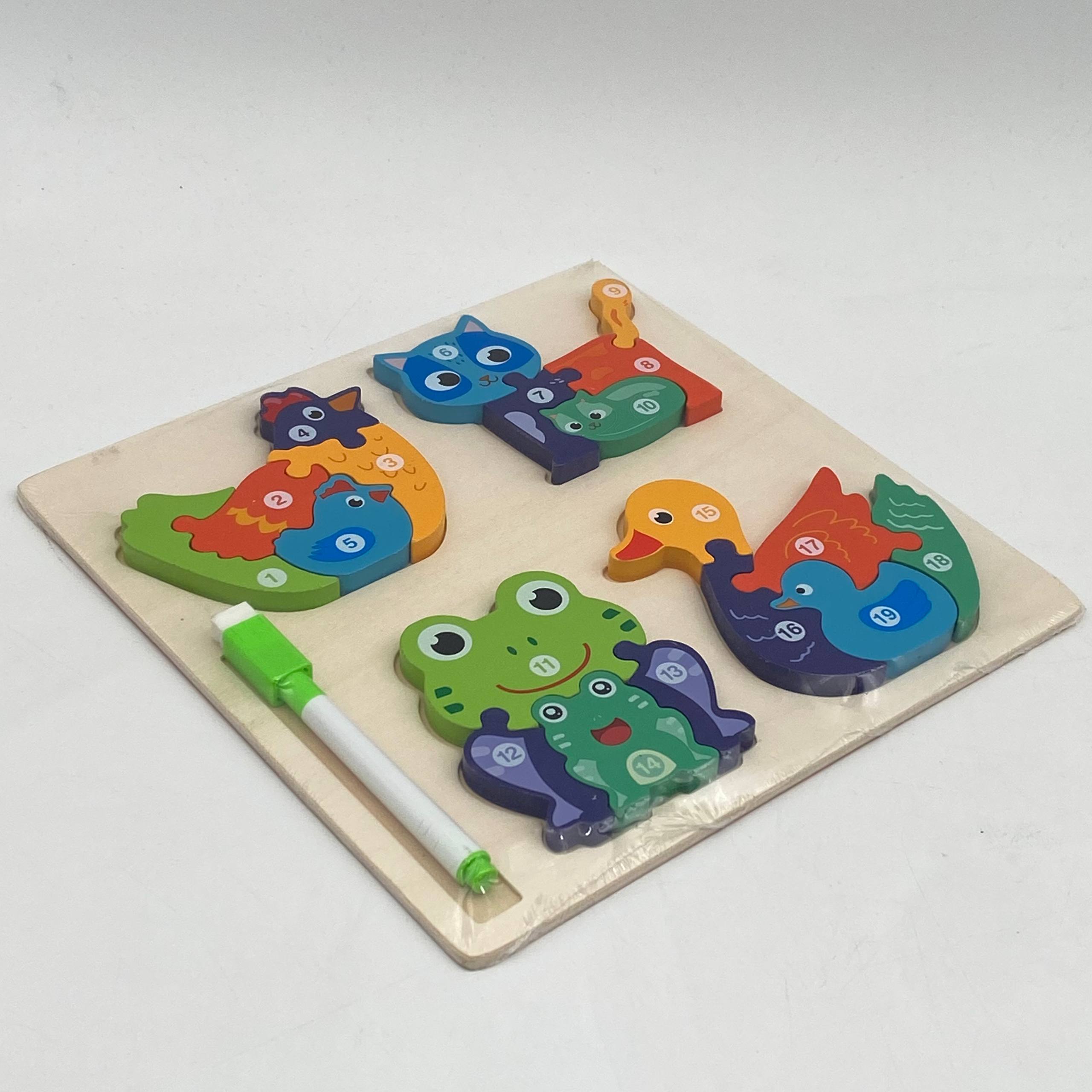 Taxta pazl: Tovuq, mushuk, qurbaqa, o'rdak