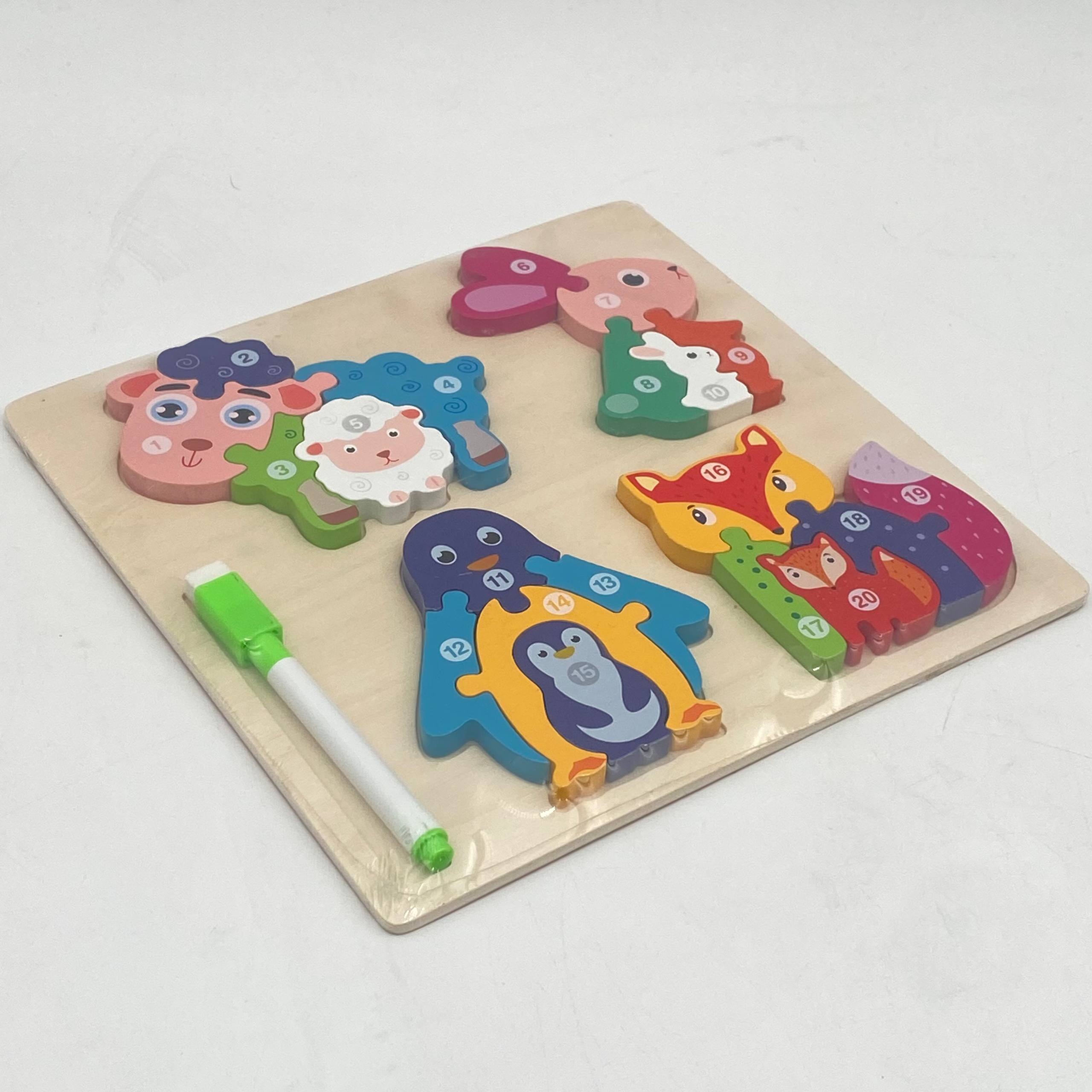 Taxta pazl: Qo'y, quyon, pingvin, tulki