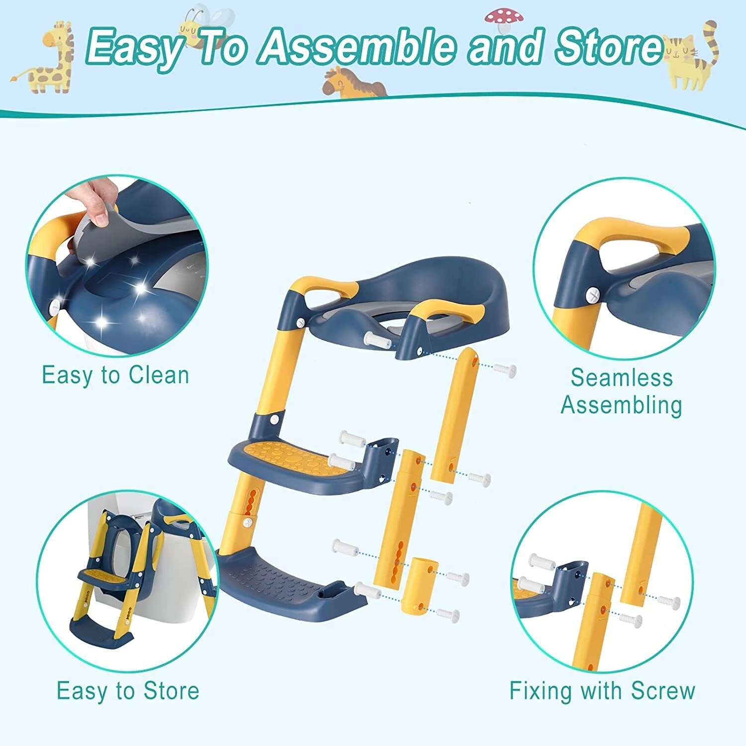 Безопасный и прочный: это сиденье для горшка безопасно использовать с нашей противоскользящей конструкцией для колодок и лестницы. Это предотвратит смещение сиденья, а это значит, что ваши дети могут подниматься и опускаться, чтобы самостоятельно пользоваться туалетом, не беспокоясь.