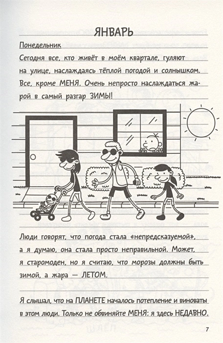 Серия "Дневник слабака" Джеффа Кинни — одна из самых популярных детских книжных серий в мире, с общим тиражом более 200 миллионов экземпляров и переводами на множество языков. Главный герой, школьник Грег Хэффли, ведет дневник, в котором с юмором и простотой описывает свои повседневные приключения и проблемы, что делает книги доступными и интересными для подростков. В 13-й книге серии "Дневник слабака-13. Глобальное потепление" автор затрагивает актуальную тему изменения климата, показывая, как внезапные перепады погоды — от оттепелей зимой до резких похолоданий весной — влияют на жизнь Грега и его окружения. Эта тема подается в легкой и юмористической форме, что помогает молодым читателям понять важность экологических проблем через призму повседневных ситуаций. Книга наполнена иллюстрациями, которые сопровождают текст и делают чтение более увлекательным. Стиль повествования прост и понятен, что особенно ценно для подростков, которые не всегда охотно берутся за книги. Кроме того, серия помогает развивать интерес к чтению и формирует чувство юмора, а также дает возможность задуматься о серьезных вопросах современности, таких как глобальное потепление. Таким образом, "Дневник слабака-13. Глобальное потепление" — это не только развлекательное чтение, но и полезный материал для осознания экологических вызовов, с которыми сталкивается современный мир, поданный через призму подростковой жизни и приключений.
