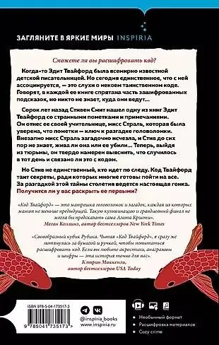 Когда то Эдит Твайфорд была всемирно известной детской писательницей. Но сегодня единственное, что с ней ассоциируется, — это слухи о некоем таинственном коде. Говорят, в каждой ее книге спрятана часть зашифрованных подсказок, но никто не знает, куда они ведут…
