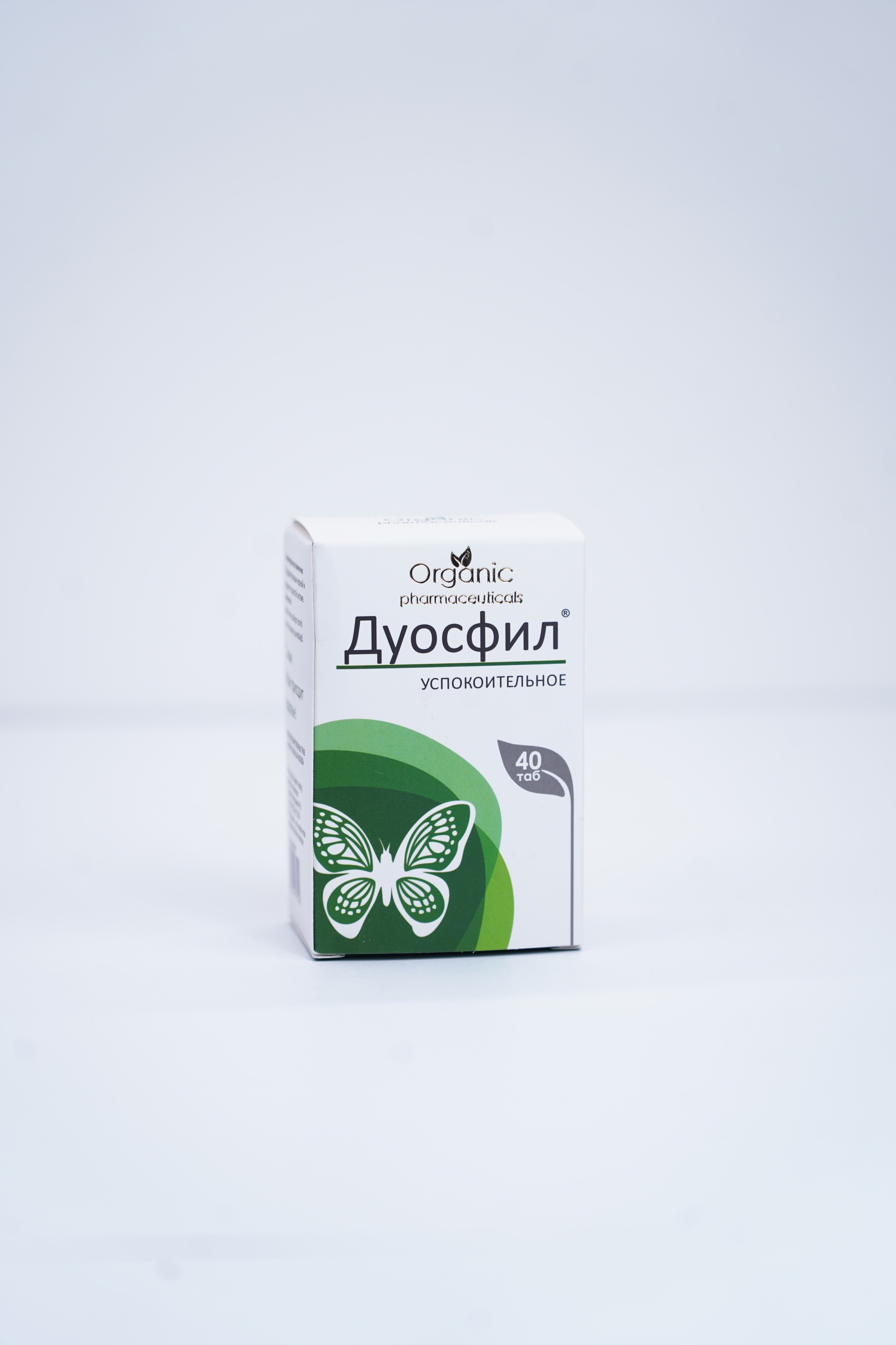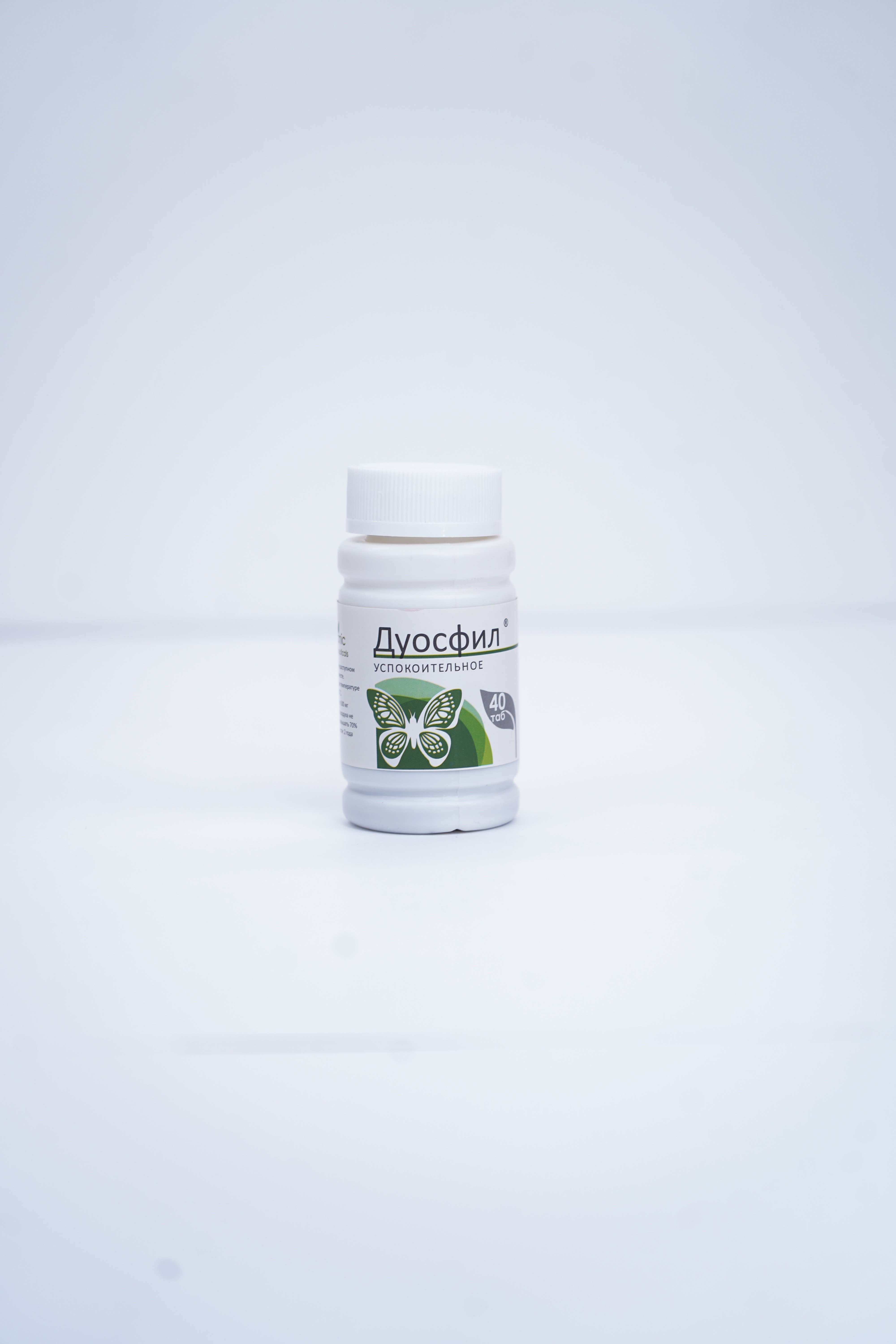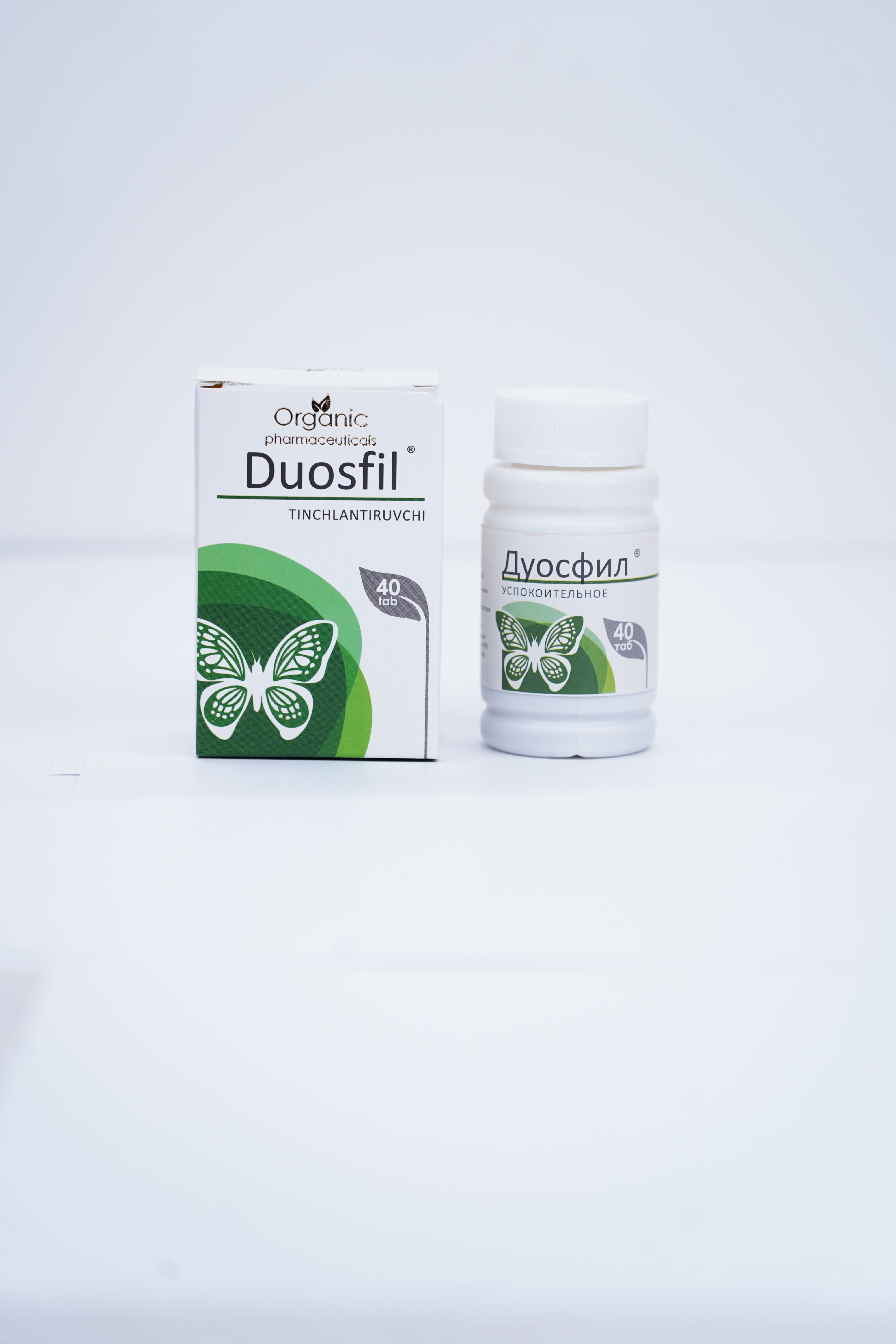 Duosfil — melissa, pyustyrnik, valeriana, yalpiz va xmelga asoslangan fitokompleksdir. Har bir komponent tabiiy sedativ xususiyatga ega va birgalikda umumiy tinchlantiruvchi ta’sirni kuchaytiradi. Preparat asabiy taranglikni kamaytiradi, xavotir darajasini pasaytiradi va emosional muvozanatni tiklashga yordam beradi. Tabiiy tarkibi Duosfilni kundalik qo‘llash uchun yumshoq va xavfsiz vosita qiladi.