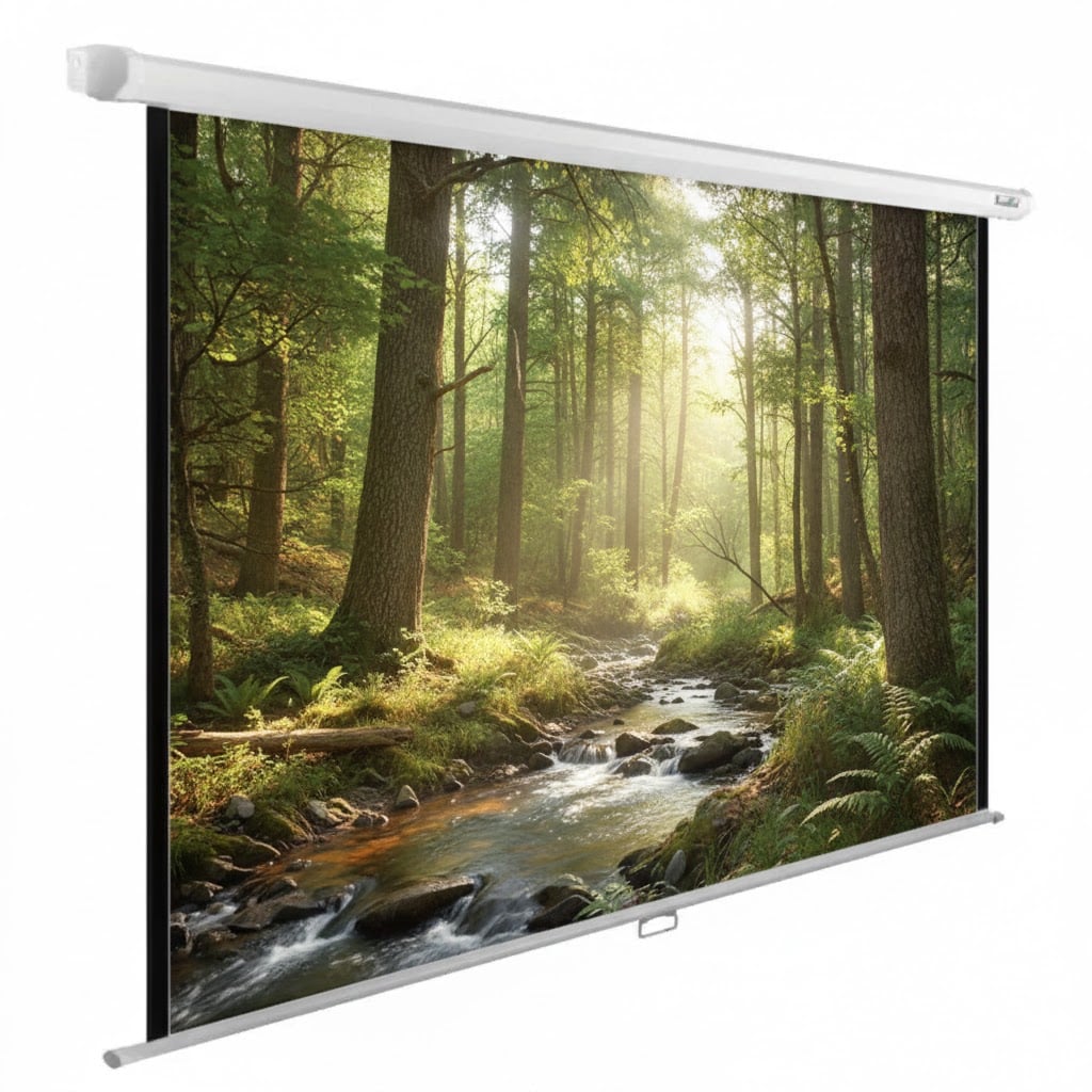 i‑View EMWM‑NTSC‑100D ekrani — bu uzoq muddatli foydalanish va yuqori optik xususiyatlarning uyg‘unligi. Matte White materiali tufayli tasvir qisman yoritishda ham yorqin bo‘lib qoladi, chetlardagi qora ramka esa kontrastni vizual ravishda kuchaytiradi. Yopilgan holatda ekran ixcham himoya korpusida saqlanadi, matoni chang va mexanik shikastlanishlardan himoya qiladi. 100 dyuymli diagonal katta auditoriya uchun qulay tomosha qilishni ta’minlaydi, uni ta’lim muassasalari, konferensiya zallari va uy kinoteatrlari uchun ajralmas yechimga aylantiradi.