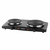 Электрическая плитка VITEK VT-3704 оснащена двумя конфорками разного диаметра, что позволяет ставить как небольшую, так и крупногабаритную посуду. Благодаря чугунным зонам нагрева можно использовать сковороды и кастрюли, произведенные из любого материала. На фронтальной панели предусмотрены раздельные регуляторы температуры, предназначенные для выбора оптимальных параметров в зависимости от таких решаемых задач, как кипячение воды, жарка мяса, рыбы, овощей, создание тушеных блюд. О нахождении устройства во включенном состоянии информируют световые индикаторы.