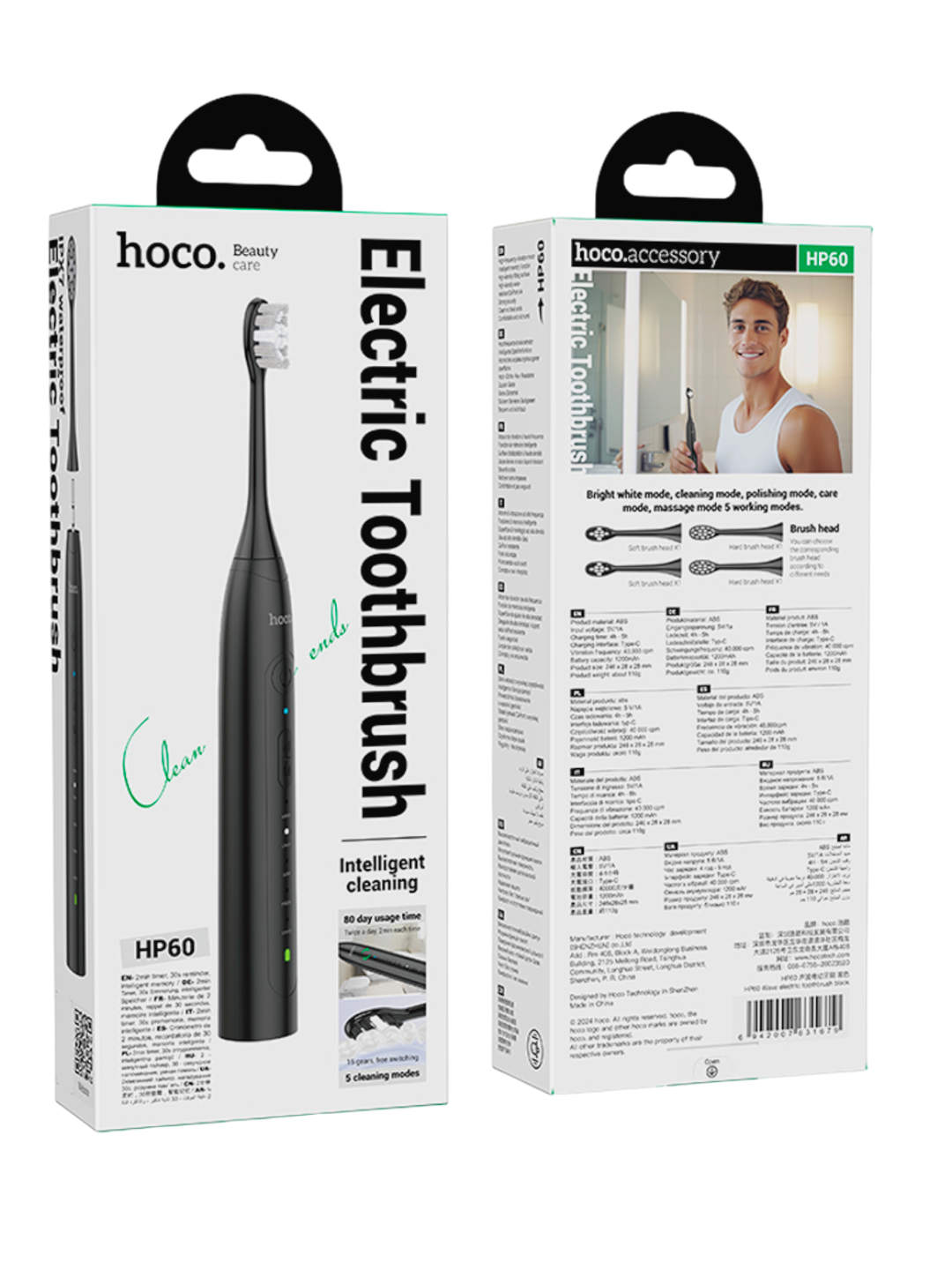 Hoco HP60 — zamonaviy elektr tish cho‘tkasi bo‘lib, og‘iz bo‘shlig‘ini samarali va chuqur tozalash uchun mo‘ljallangan. U kundalik tish parvarishini qulay va samarali qiladi.