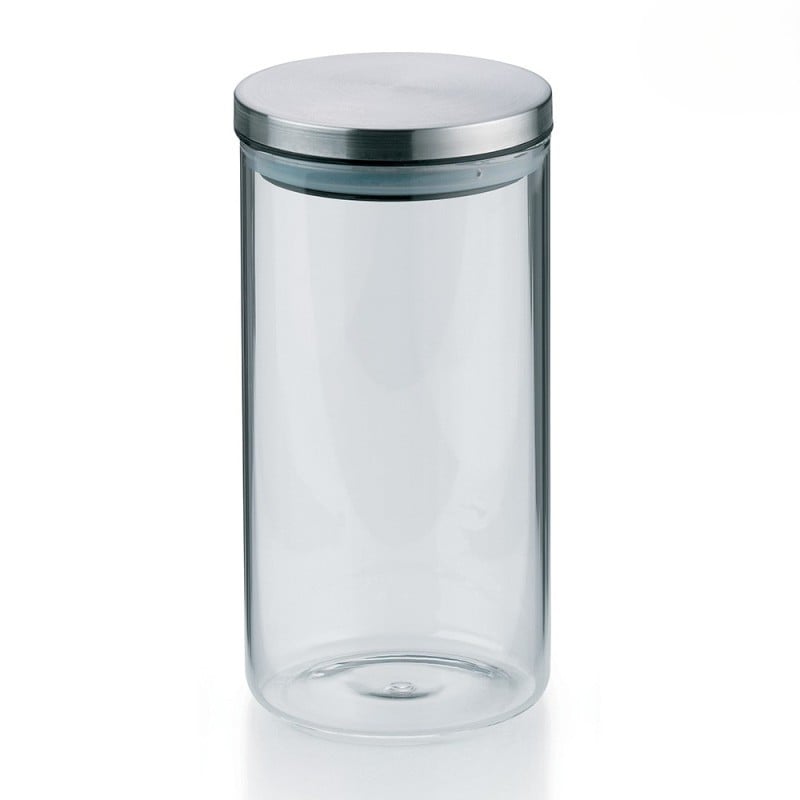 Korpus mustahkam shaffof shishadan tayyorlangan bo‘lib, ichidagi mahsulot miqdorini osongina ko‘rish imkonini beradi. Qopqoq 18/10 zanglamaydigan po‘latdan tayyorlangan va silikonli muhr bilan jihozlangan — bu mahsulotni namlik va begona hidlardan ishonchli himoya qiladi.