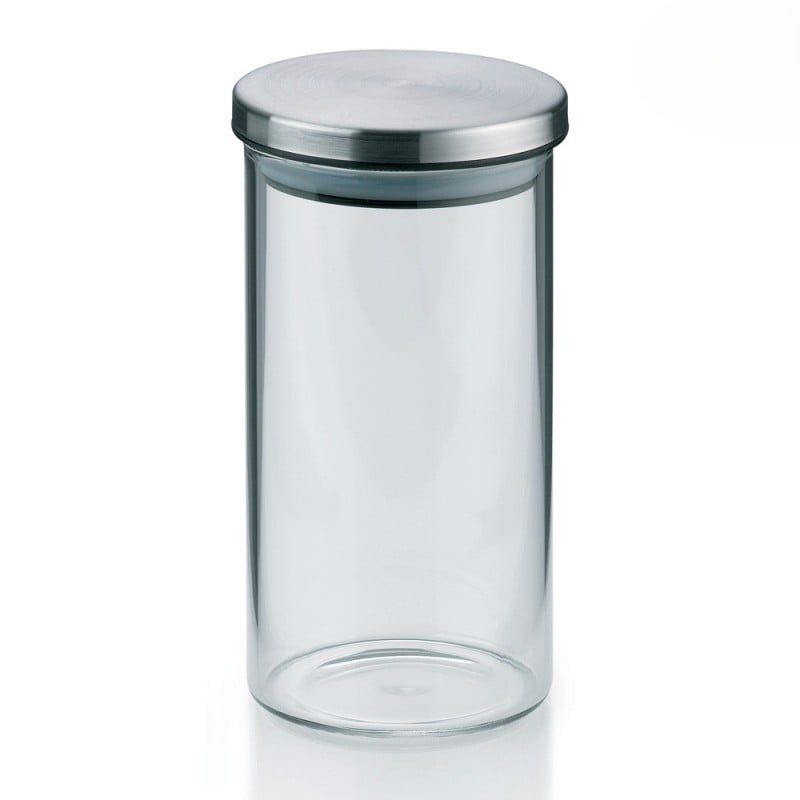 Korpus mustahkam shaffof shishadan tayyorlangan bo‘lib, ichidagi mahsulot miqdorini osongina nazorat qilish imkonini beradi. Qopqoq 18/10 zanglamaydigan po‘latdan tayyorlangan va silikonli muhr bilan jihozlangan — bu namlik va begona hidlarning kirishini oldini oladi.