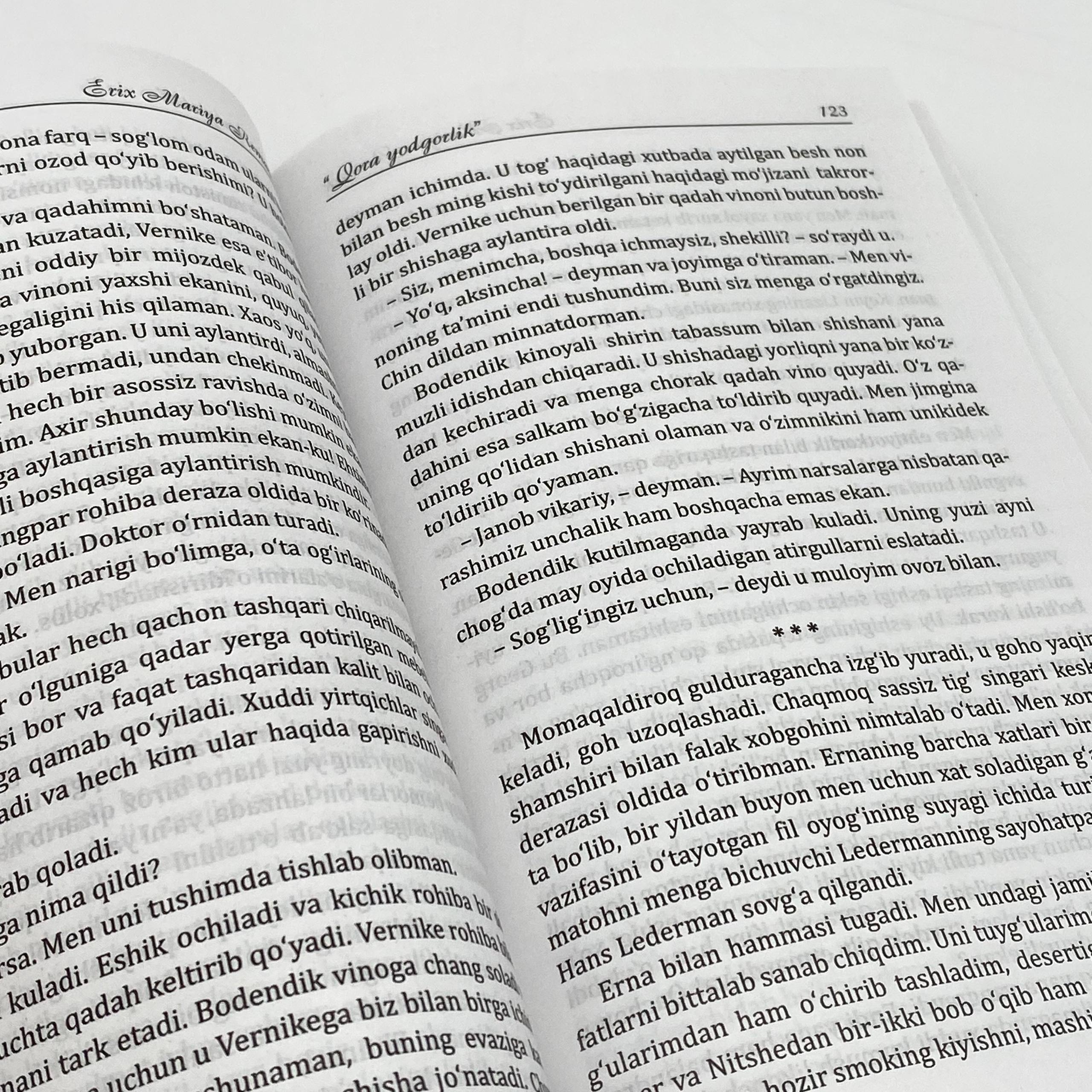 Ishlab chiqaruvchidan 1 yil kafolat. Mahsulotni 10 kun ichida qabul qilamiz va darhol pulni qaytaramiz.Germaniya, 1920-yillar. Birinchi jahon urushidagi fojialar ortda qoldi, ammo uning yaralari hamon jamiyat va inson qalbini vayron qilmoqda. "Qora yodgorlik" - Erix Mariya Remarkning ma'naviy izlanishlari, qalb sargardonligi va urushdan keyingi ma'naviy bo'shliq haqidagi ta'sirli romani.
