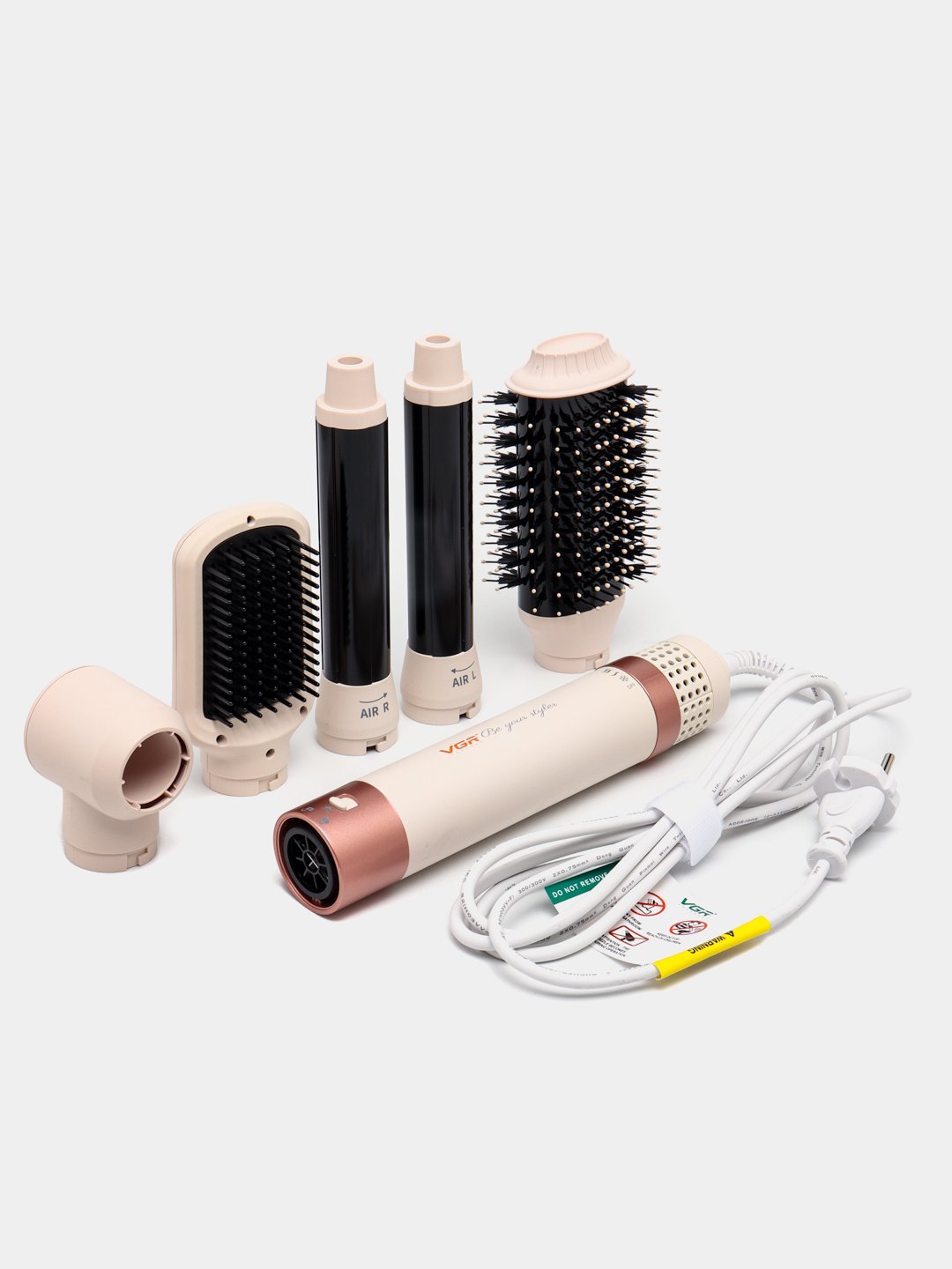 VGR V-487 Professional 5in1 Hot Air Brush — bu universal multistayler bo‘lib, u fen, brashing, ployka va stayler funksiyalarini birlashtiradi. Besh xil nasadkasi va qulay ergonomik tuzilishi tufayli siz osongina turli xil soch turmaklarini yaratishingiz mumkin — mukammal tekis sochlardan tortib hajmli jingalaklar va chiroyli buklamalargacha.