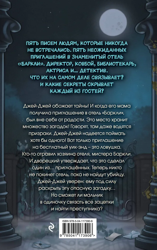 Джей-Джей ужасно рад: он едет на выходные в отель «Баркли»! Это самое знаменитое и таинственное место в округе. Вот только мальчик не мог и представить, что на самом деле попадёт в ловушку… Хозяина отеля, мистера Баркли, отравили! И выбраться из отеля можно лишь раскрыв преступление. Получится ли у Джей-Джея найти злодея?
