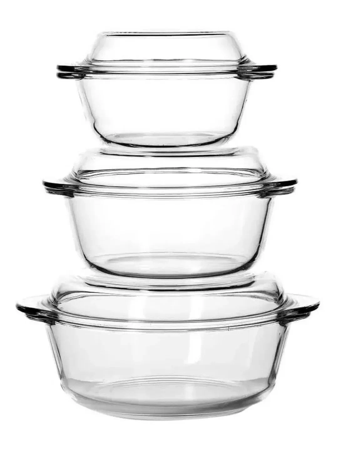 PASABAHCE BORCAM 159021 to‘plami — uch xil hajmli (2100 ml, 1450 ml va 840 ml) olti dona issiqga chidamli idishlar. Bu zapekanka, go‘sht va sabzavot taomlari, desertlar va bayramlik taomlarni tayyorlash uchun ideal yechim. Yuqori sifatli borosilikat shisha taomlarni teng pishirishni va ularning ta’m va hidini saqlashni ta’minlaydi.