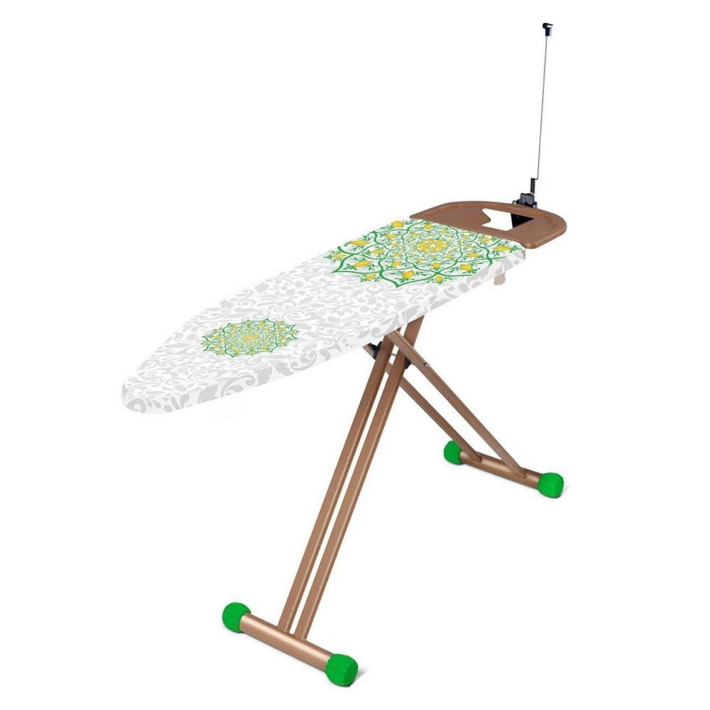 Corona Hurrem Lux производится из высокопрочных материалов, например, из ДСП, которое послужило материалом для основы. Металлические ножки обеспечат устойчивость. В конструкции гладильной доски присутствует компактный подутюжник, а также удобный удлинитель для утюга.