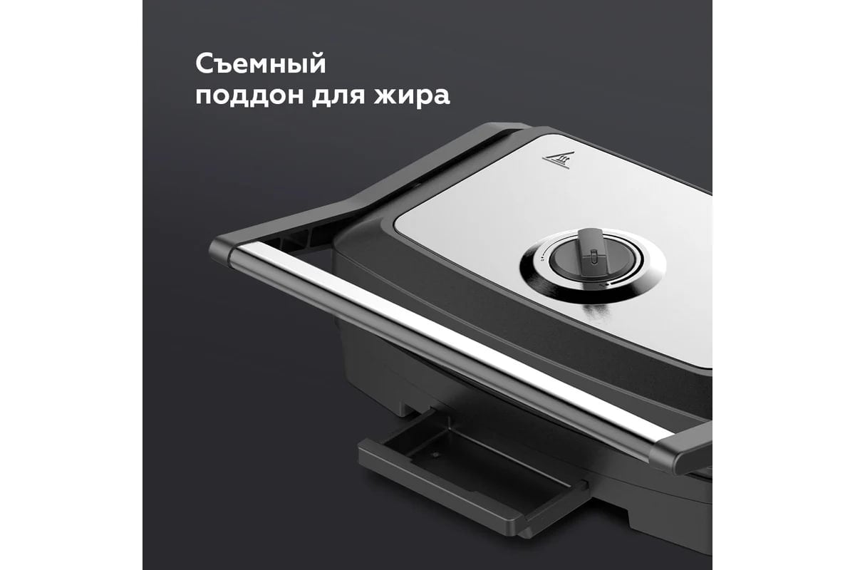 Sovrinli yog‘ va sharbat lотоки tozalashni osonlashtiradi, oshxonani toza saqlashga yordam beradi va tayyor taomlarda ortiqcha yog‘ni kamaytiradi. Gril blokirovka qulfi bilan jihozlangan, issiqlikdan himoyalangan tutqich esa kuyishdan saqlaydi va boshqarishni qulay qiladi.