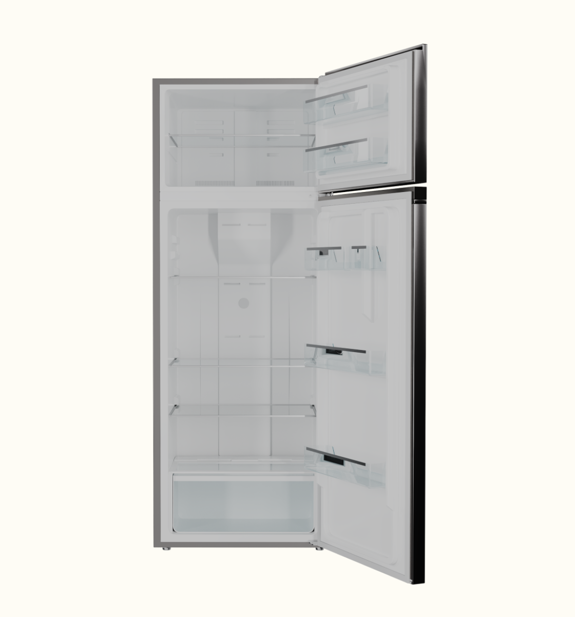 Nerjaveyka po‘latdan yasalgan korpus nafaqat zamonaviy va chiroyli ko‘rinishga ega, balki tirnalish va korroziyaga chidamliligi bilan uzoq muddat xizmat qiladi. Multi-Flow ko‘pyo‘nalishli sovutish tizimi yordamida sovuq havo butun kamerada teng taqsimlanadi, No Frost texnologiyasi esa sovutgichni qo‘lda muzdan tushirish zaruratini yo‘q qiladi — endi muz va qor sizning vaqtingizni olmaydi.