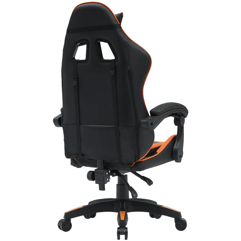 Orqa qismi 90°–135° orasida sozlanadi, diqqatni jamlash yoki dam olish uchun optimal burchakni tanlash imkonini beradi, bel uchun yostiq orqaning past qismini qo‘llab-quvvatlaydi va to‘g‘ri turish holatini saqlaydi. Bosh yostiği bosh va bo‘yni yumshoq qo‘llab-quvvatlaydi, uzoq o‘yin sessiyalarida ham qulaylikni ta’minlaydi.