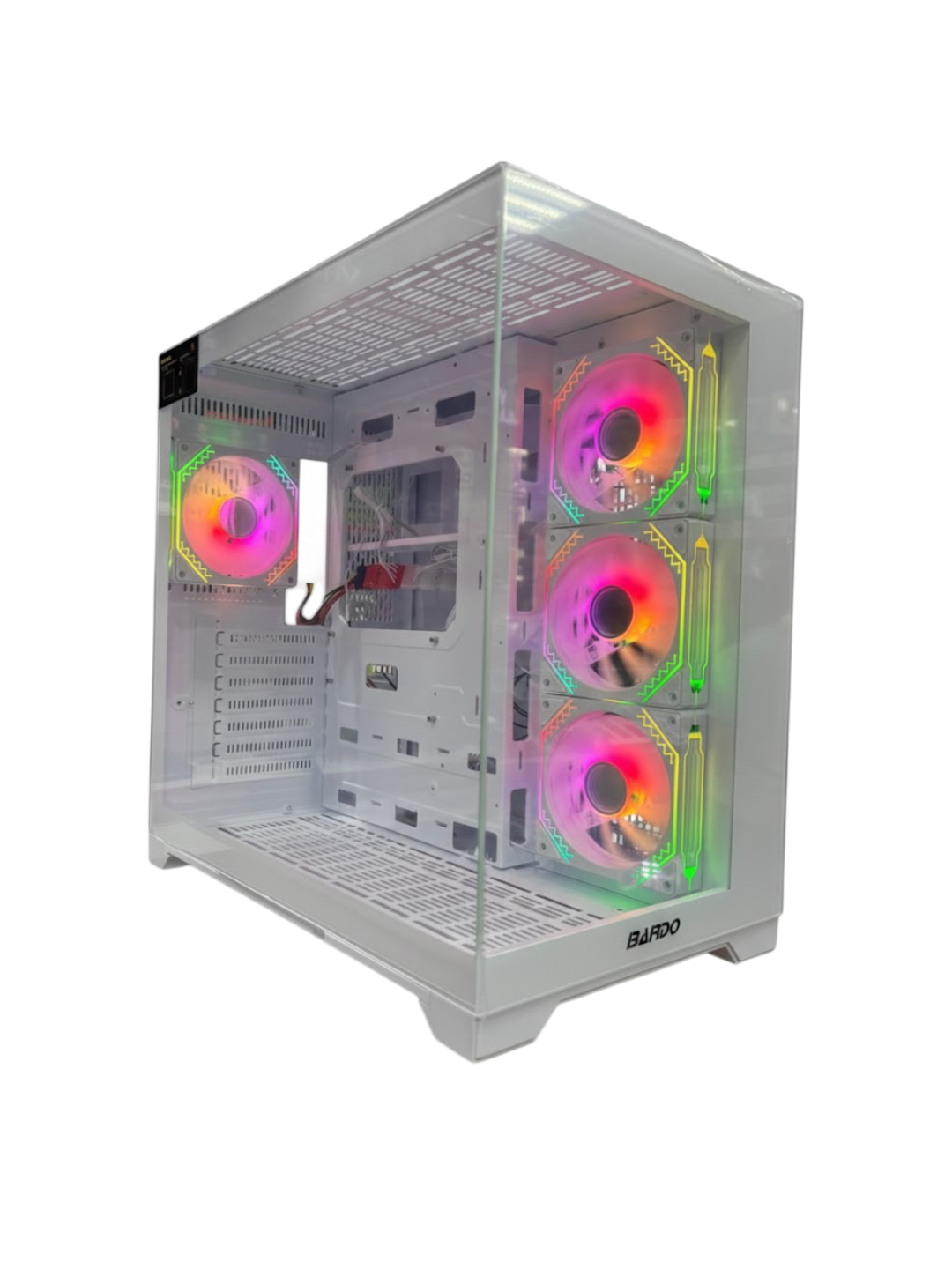Case Game Bardo BD‑420 White Aquarium — bu oq rangdagi zamonaviy Mid‑Tower korpus bo‘lib, effektli o‘yin va kuchli ish tizimlarini yaratish uchun mo‘ljallangan. U zamonaviy dizayn, yuqori funksionallik va samarali sovutish imkoniyatlarini birlashtiradi.
