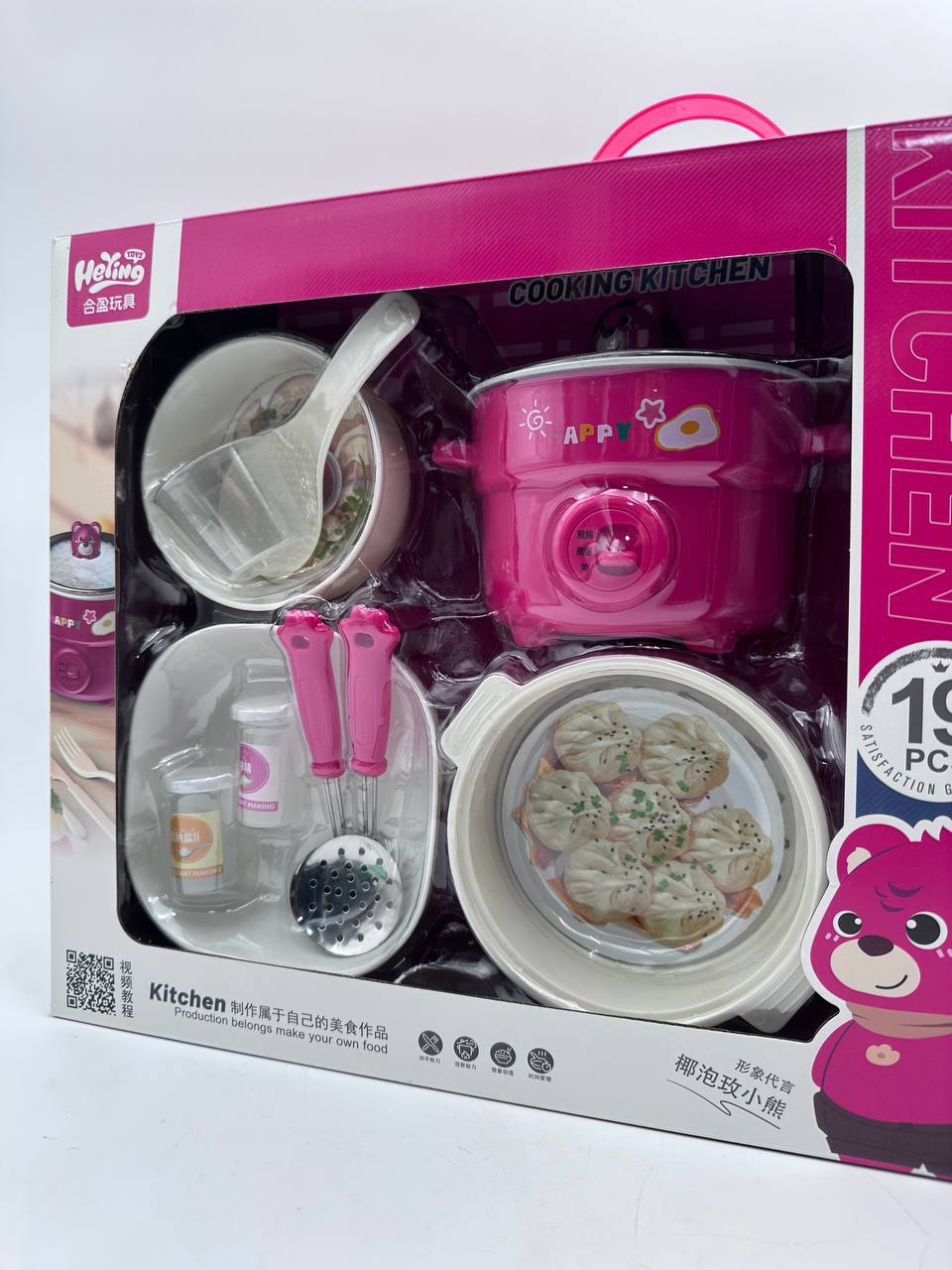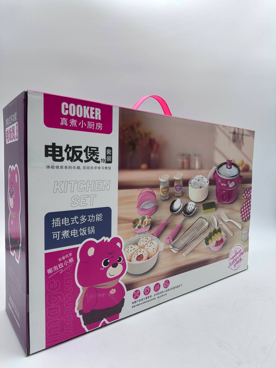 Bu o‘yinchoq to‘plam kichik pazandachilikni yoqtiradigan bolalar uchun mo‘ljallangan. To‘plamda elektr pishirgich (multivarka), idish-tovoqlar, qoshiq, cho‘mich, tayoqchalar, plastinka, ziravor idishchalari va ovqat maketlari mavjud.