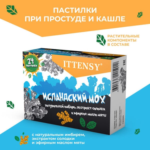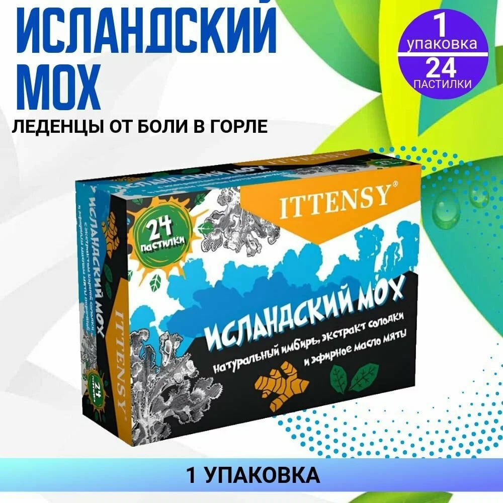 Ittensy pastilkalaridagi asosiy komponent — Island moxi (Cetraria islandica), tabiiy shilliq qoplovchi va yallig‘lanishga qarshi ta’sir ko‘rsatadi. Tomoq og‘rig‘i, quruq yo‘tal, xirillash va ovoz bo‘g‘ilishi kabi belgilarni kamaytirishga yordam beradi.