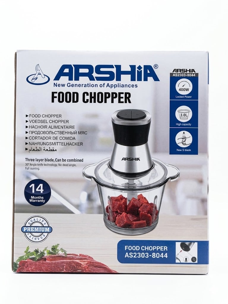 Oshxonangizdagi eng universal yordamchi — Arshia brendidan kuchli va keng sig'imli maydalagich! Ushbu qurilma go'sht, sabzavotlar, mevalar, yong'oqlar va ko'katlarni sanoqli soniyalarda maydalab beradi.