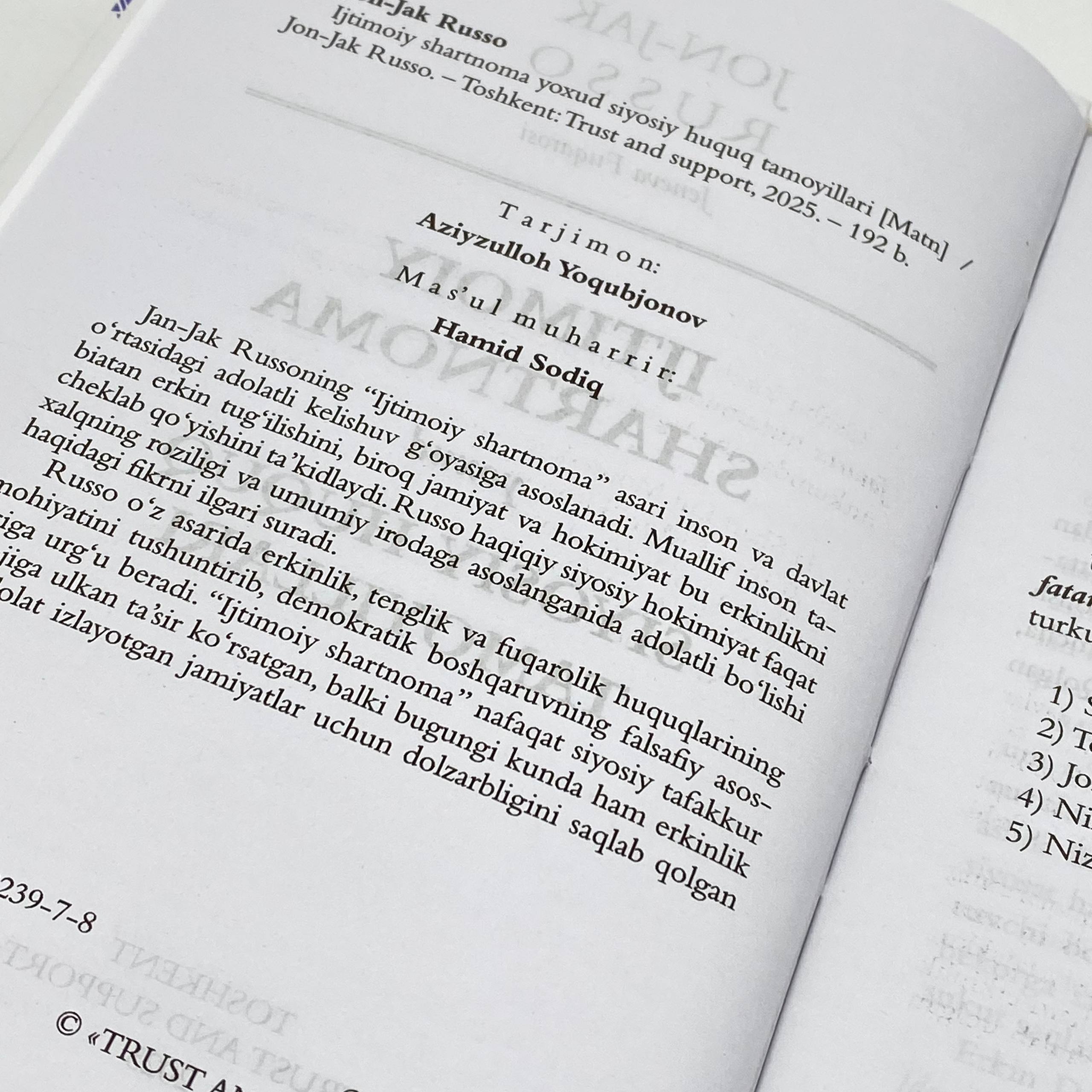 Jan-Jak Russo: Ijtimoiy shartnoma sizga ma’qul kelmadimi, yoki hali ham ikkilanyapsizmi? Mutaxassislarimiz tanlov qilishda sizga yordam beradi. Keling, mutaxassis bilan bog‘lanib, fikrini tinglaylik.