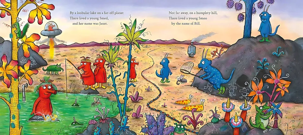 Soar into space with a glorious love story of alien folk that's literally out of this world. The Smeds (who are red) never mix with the Smoos (who are blue). So when a young Smed and Smoo fall in love, their families strongly disapprove. But peace is restored and love conquers all in this happiest of love stories. There's even a gorgeous purple baby to celebrate! With fabulous rhymes and breathtaking illustrations, this is a sure-fire winner from the best-selling creators of Stick Man.