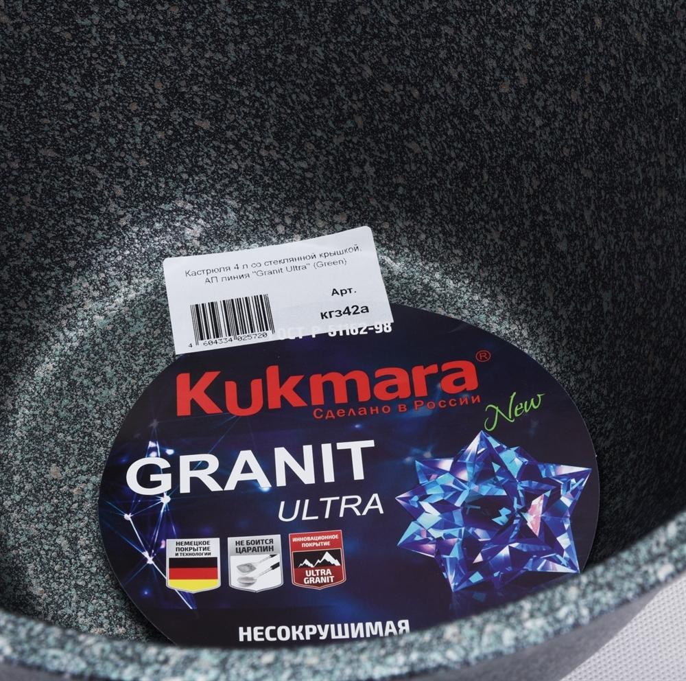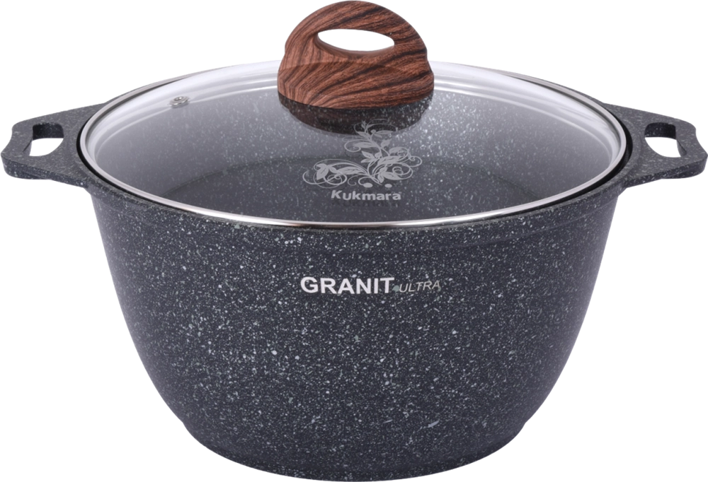 Кастрюля "Kukmara" изготовлена из литого алюминия и покрыта уникальным ультрапрочным антипригарным покрытием «Ultra granit».