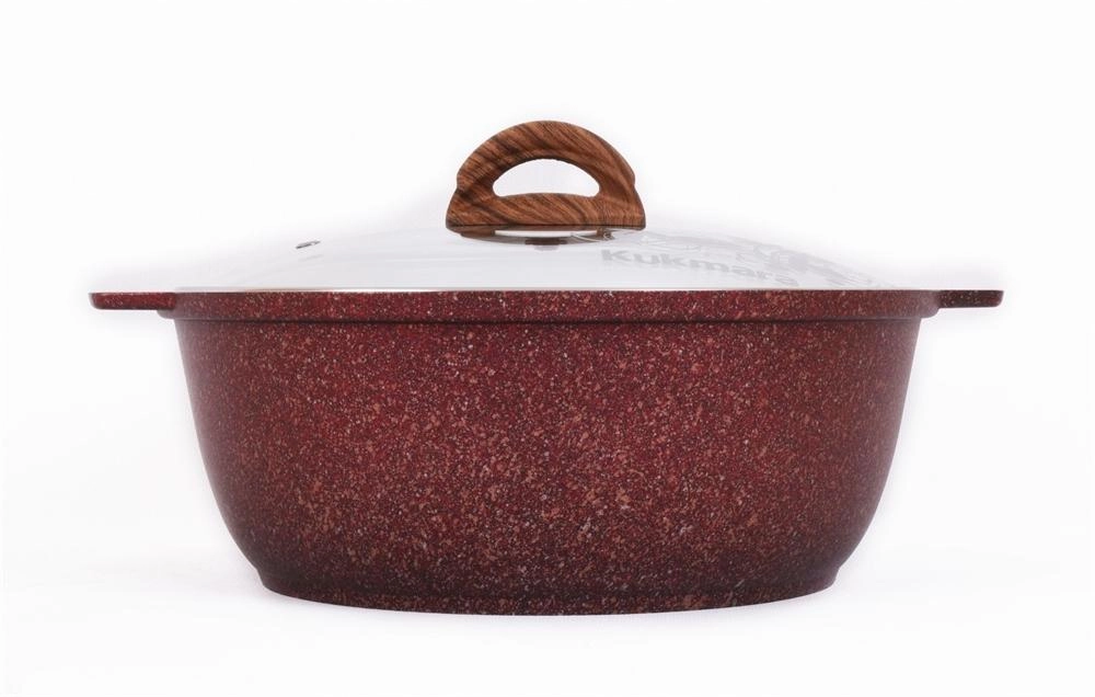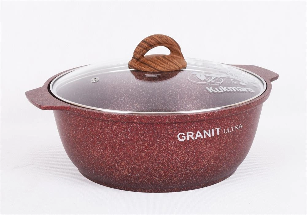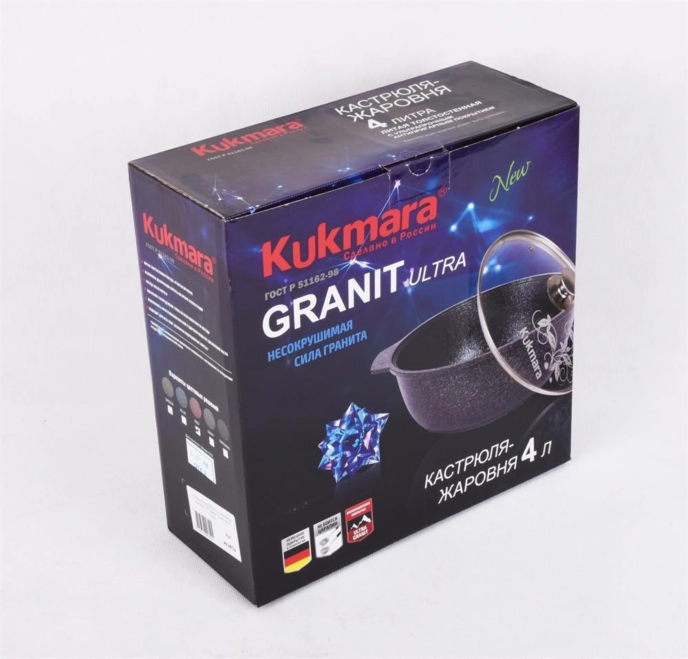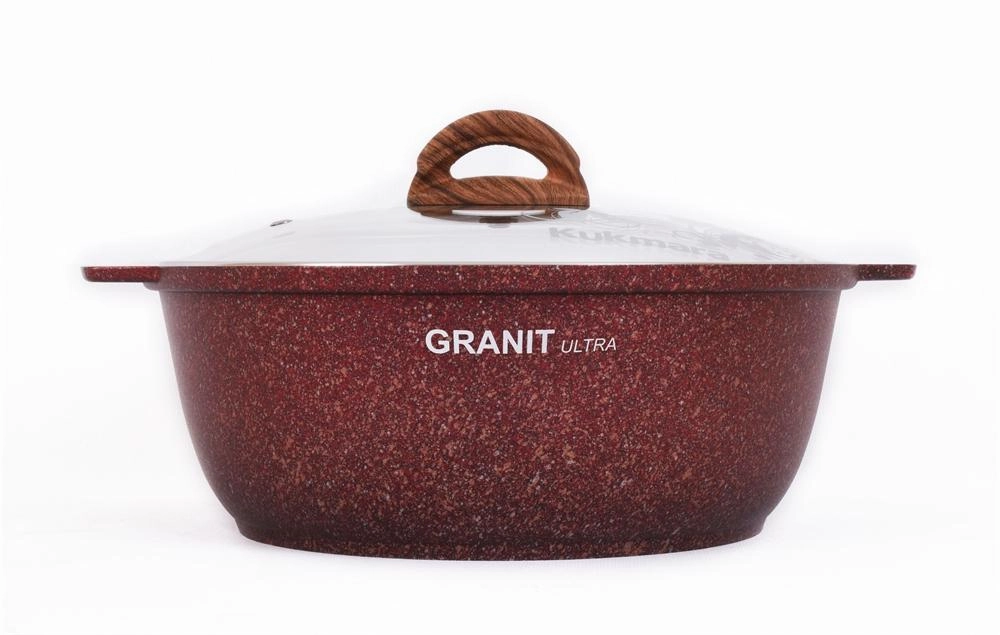 Кастрюля-жаровня "Kukmara" изготовлена из литого алюминия и покрыта уникальным ультрапрочным антипригарным покрытием «Ultra granit».