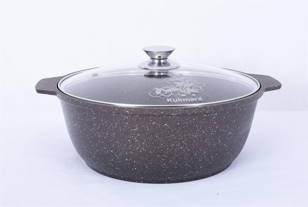 Kukmara «Mramor» 3 litrli — bu oddiy qozon emas, balki qozon-jarovnya bo‘lib, klassik qozon va tova imkoniyatlarini o‘zida birlashtiradi. Past devorlari va keng tagligi tufayli unda sho‘rva pishirish, sabzavotlarni dimlash, taomlarni tomitish, qovurish va ko‘plab nozik taomlarni tayyorlash mumkin. Bu idish o‘zining shakli tufayli sabzavotli rag‘u, palov, adjasandali, ratatuй, chahohbili va boshqa ko‘plab taomlar uchun juda mos keladi.