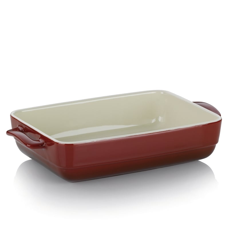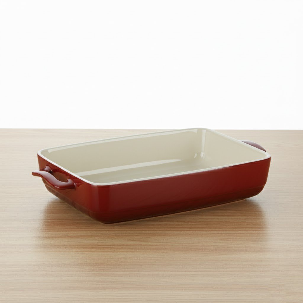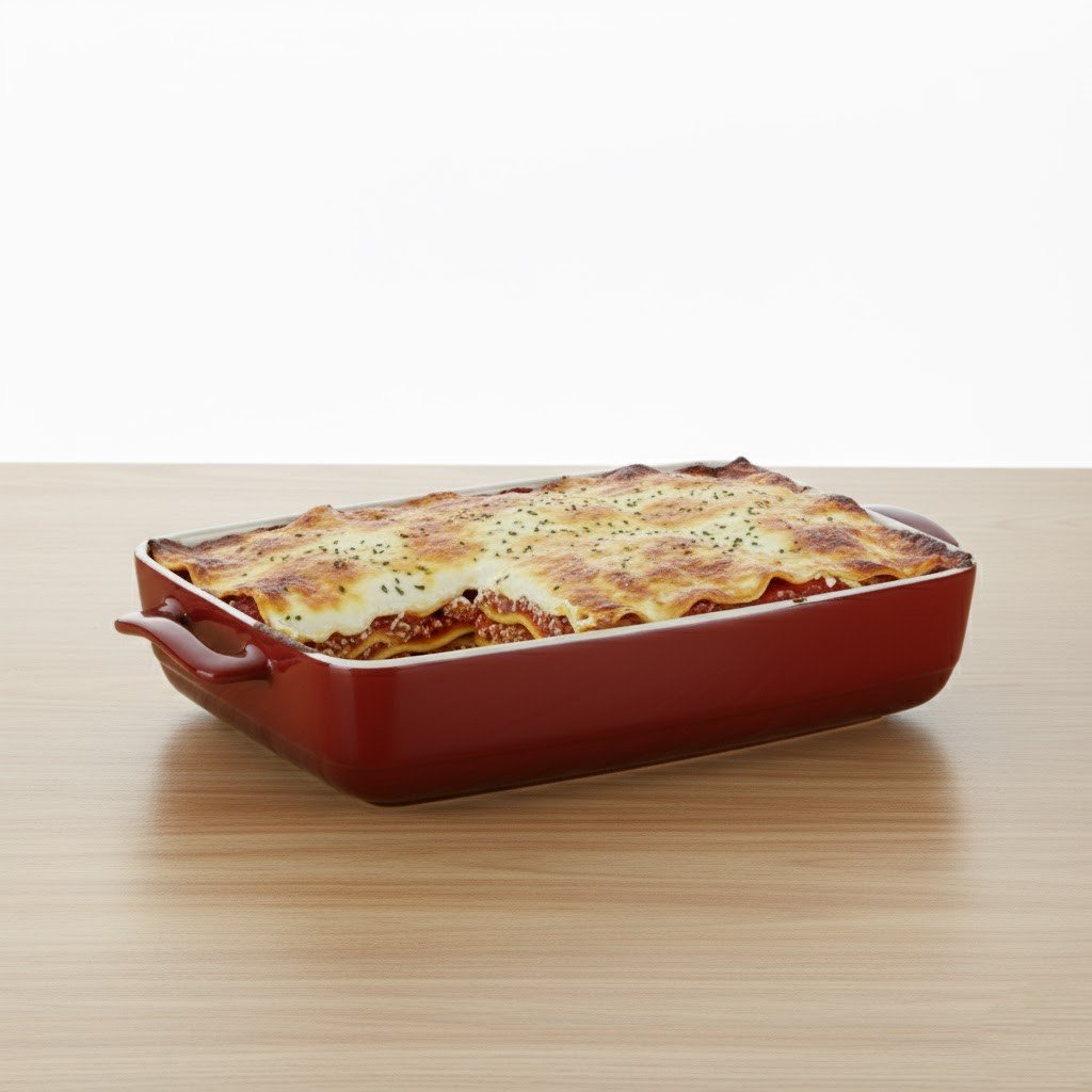 O‘lchami — 32 × 19 sm, balandligi taxminan 6,5 sm — bu uni 2–4 kishilik taomlar uchun qulay qiladi. Yon tutqichlari formani duxovkadan xavfsiz olib chiqish va dasturxonga olib borishni osonlashtiradi.