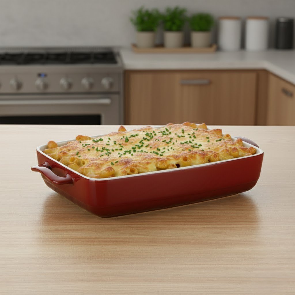 Forma 280 °C gacha bo‘lgan haroratga bardosh bera oladigan sifatli keramikadan tayyorlangan. Material issiqlikni bir tekis taqsimlaydi, bu esa taomni yumshoq va teng pishishini ta’minlaydi, kuyish xavfini kamaytiradi. Silliq sathi tirnalishga chidamli va tozalashda qulay.