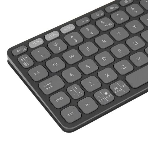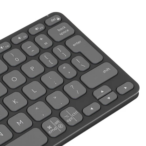 Klaviaturada 78 ta past profilli tugma mavjud bo‘lib, ularning qaychi mexanizmi qulay, tinch va aniq matn kiritishni ta’minlaydi. Bundan tashqari, 12 ta multimedia tugmasi mavjud bo‘lib, ular orqali ovoz balandligi, ekran yorqinligi va media-fayllarni boshqarish mumkin. Fn tugmasi va standart ISO-tartib Windows va macOS tizimlarida ishlashni qulay qiladi, shuningdek, Logi Options+ ilovasi yordamida tugma kombinatsiyalarini shaxsiy sozlash mumkin.