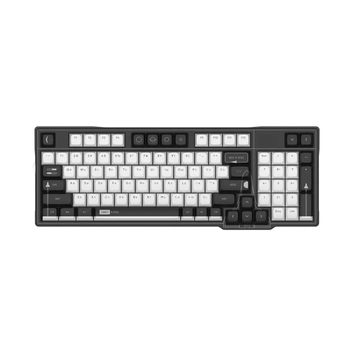 Lunacy In Space simsiz o‘yin klaviaturasi har bir tugma bosilishidan maksimal nazorat va zavq beradi. Barqaror simsiz ulanish va tezkor javob vaqti uni o‘yinlar va faol kompyuter ishlari uchun ideal tanlov qiladi.