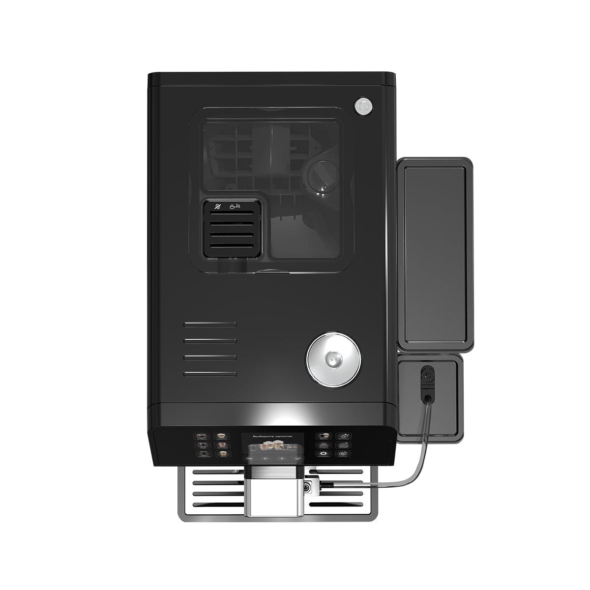Boshqaruv sensorli panel orqali amalga oshiriladi, yorqin rangli LCD displey esa tanlangan rejimlar va sozlamalarni aniq ko‘rsatadi. Balandligi sozlanadigan dispenser (72 dan 150 mm gacha) turli o‘lchamdagi chashka va stakanlar uchun mos keladi, tayyorlash zonasining yoritilishi esa foydalanishni yanada qulay va estetik qiladi. Qurilma bir vaqtning o‘zida ikki chashka qahva tayyorlashni ham qo‘llab-quvvatlaydi, bu esa mehmonlar yoki oila uchun juda qulay.