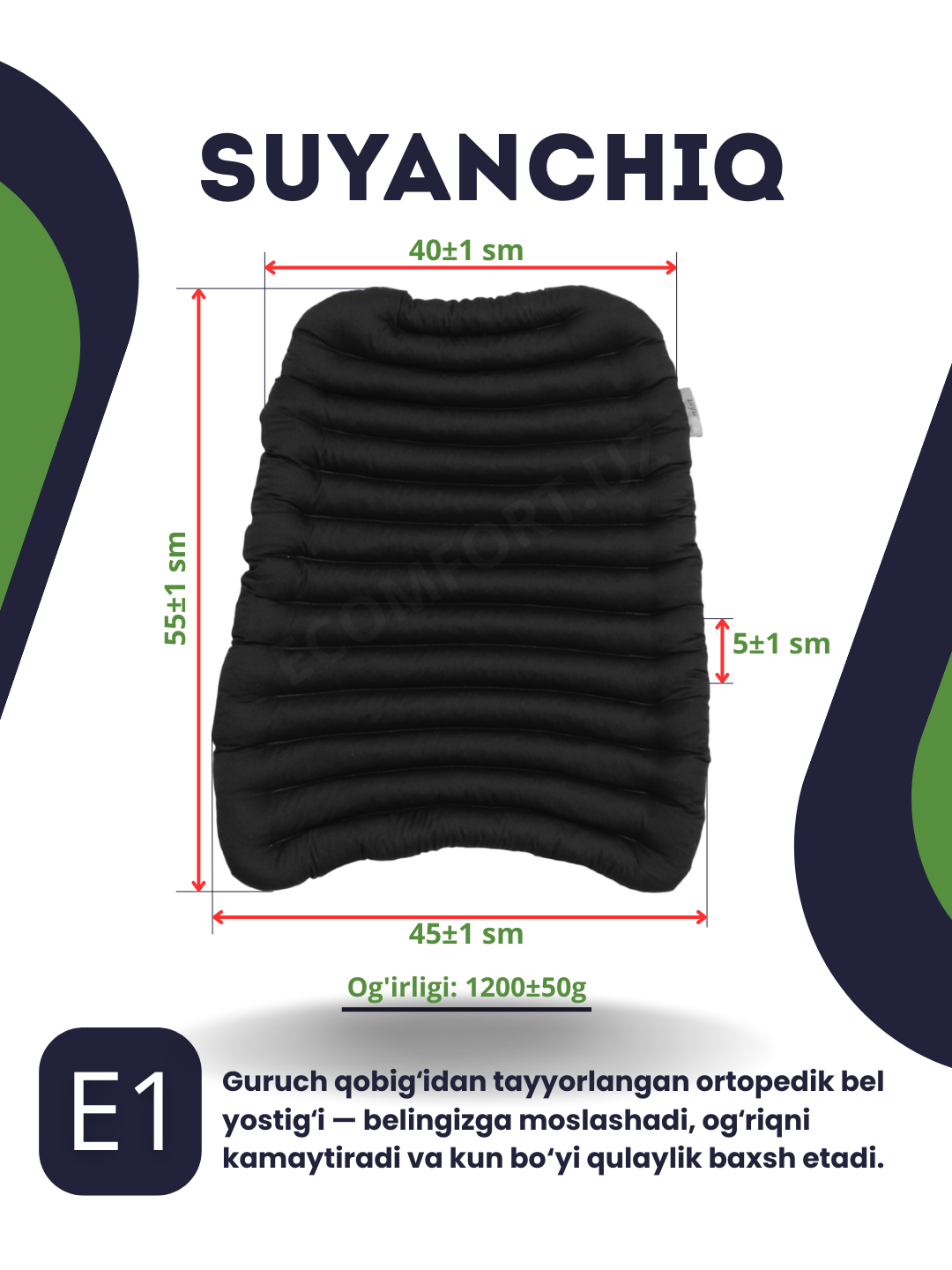 BELLIM, Econom ortopedik yostiqlar to‘plami, 3 ta 1, E-1, Black O'zbekistonda