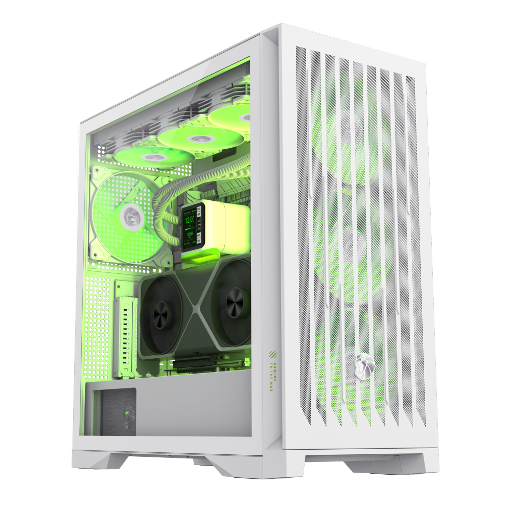 Dizayn: yon tomonda katta shaffof panel bo‘lib, kompyuter ichidagi komponentlarni ko‘rsatishga imkon beradi.