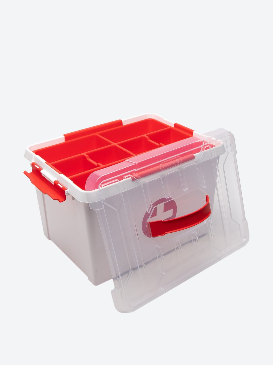 Tactix 320270 — bu mustahkam va ixcham konteyner-aptechka, turli xil tibbiy buyumlar va birinchi yordam vositalarini saqlash uchun mo‘ljallangan. Uning ixcham dizayni va qulay bo‘linmalari tufayli, dori-darmonlar, bog‘lovchi materiallar va kichik tibbiy anjomlarni tartibli joylashtirish mumkin.