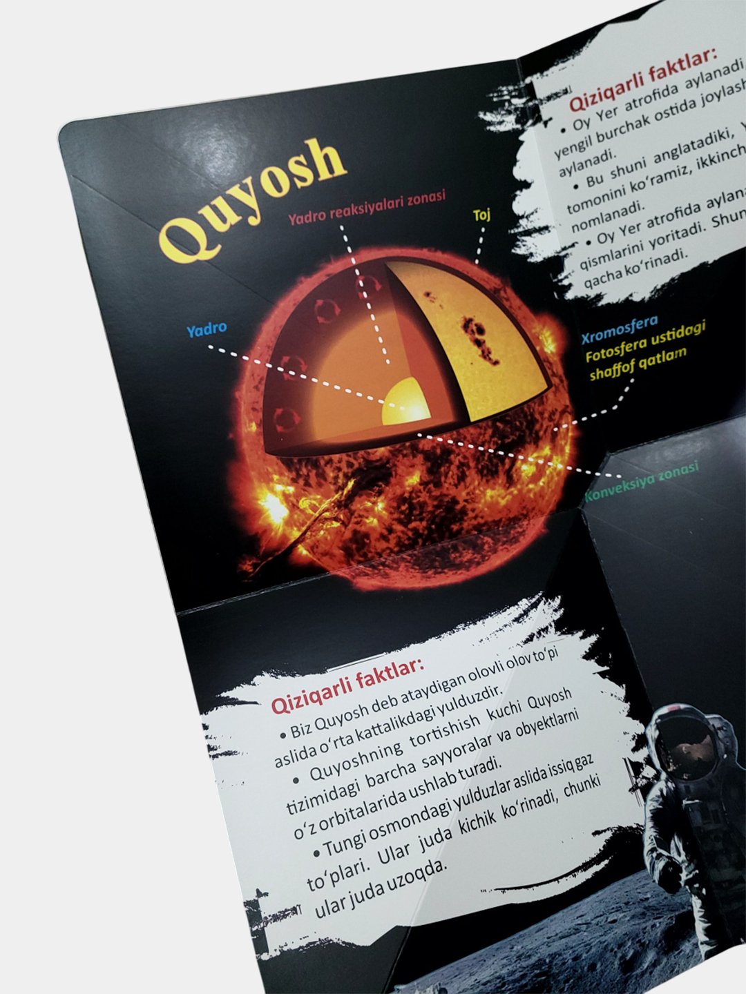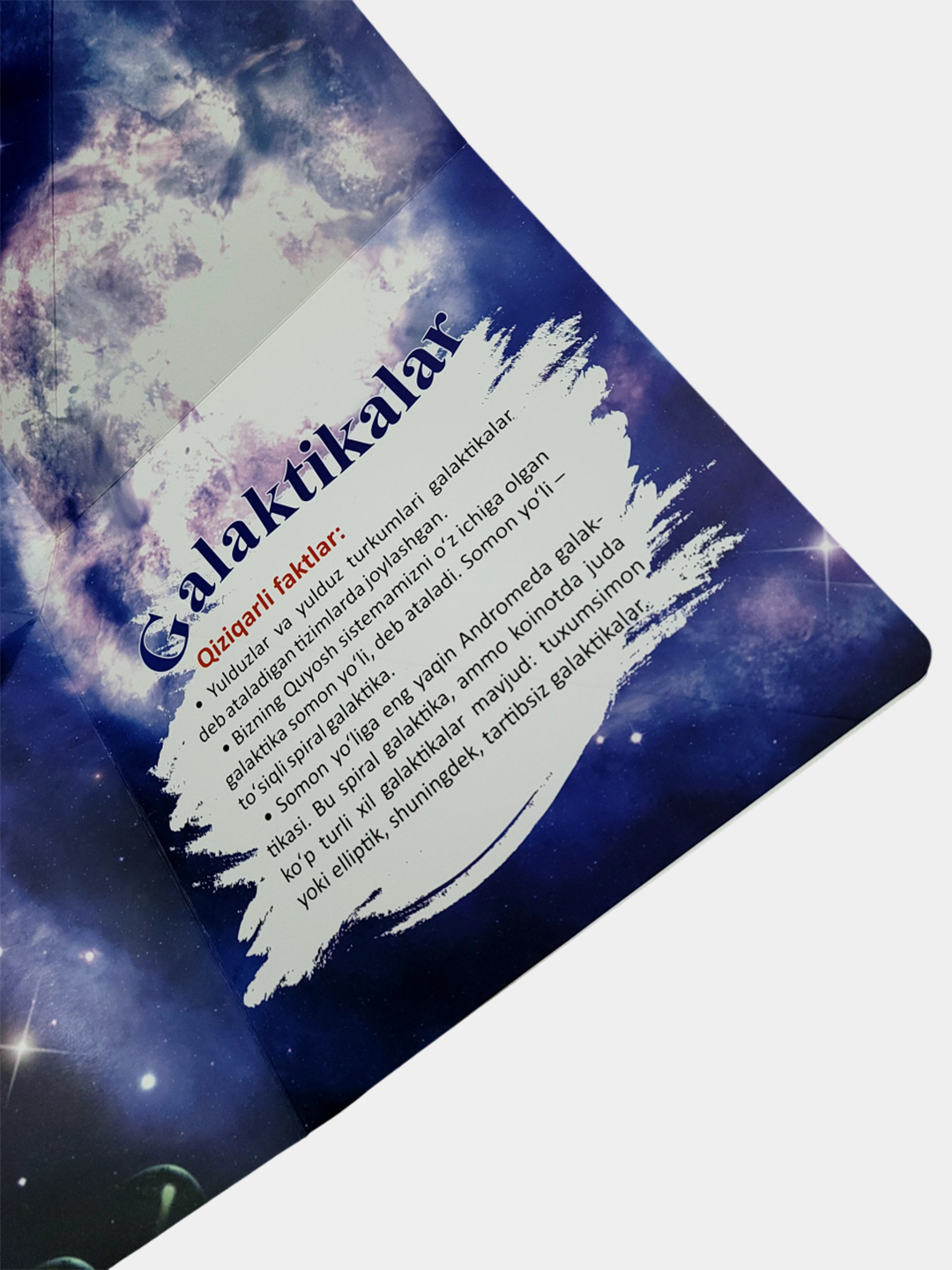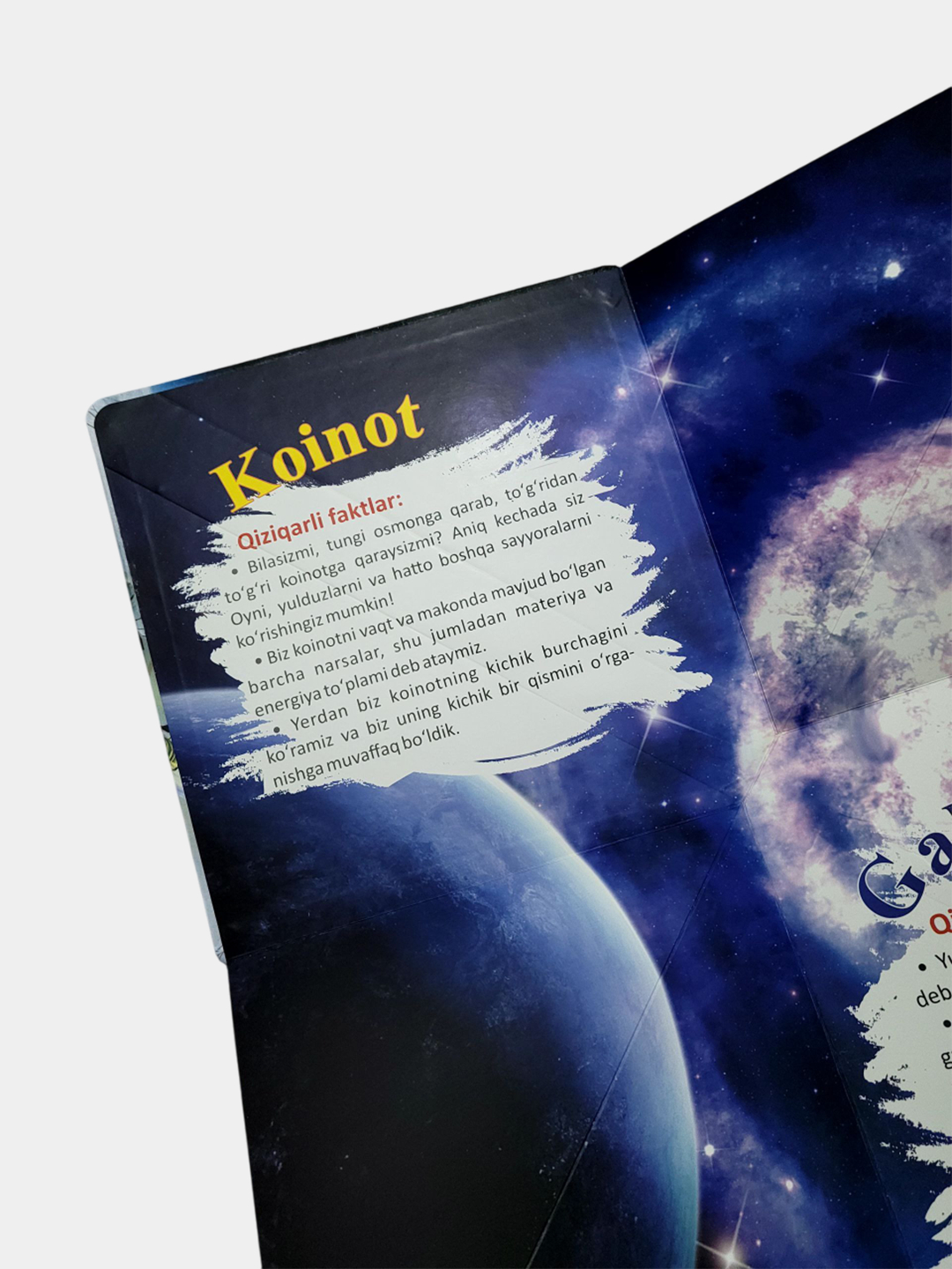 Kitobning jozibador va o’zgacha taxlanuvchi varaqlari o’quvchining “Kosmos”ga boʻlgan mehrini yanada oshiradi!