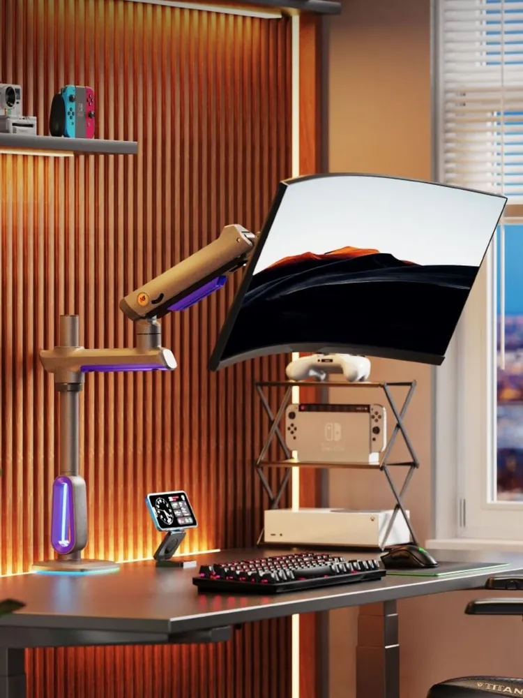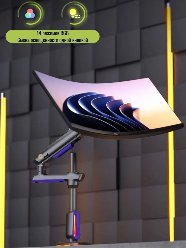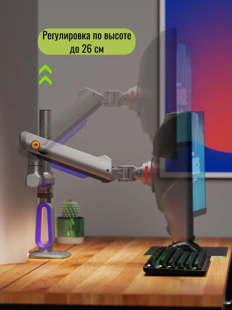 Eng katta monitorni ham qulay boshqarishni va ish joyingizni zamonaviy ko‘rinishga keltirishni xohlaysizmi? NB G-80 RGB — ultrakeng va og‘ir ekranlar uchun yaratilgan flagman gazlift kronshteyni. U kuchli konstruksiya, silliq sozlash va yorqin RGB yoritgichni birlashtirib, ish yoki o‘yin maydoningizni ergonomik va chiroyli qiladi.